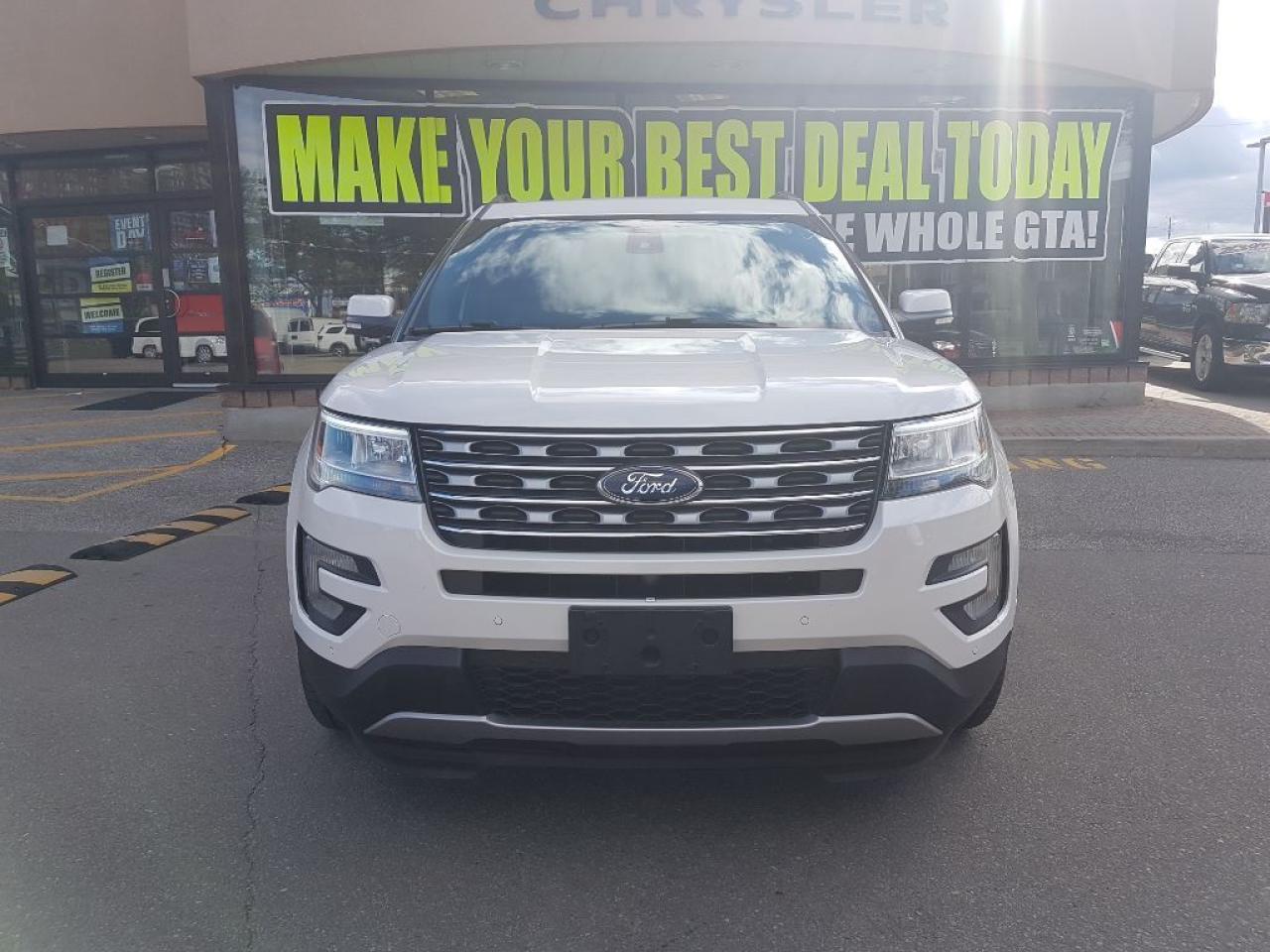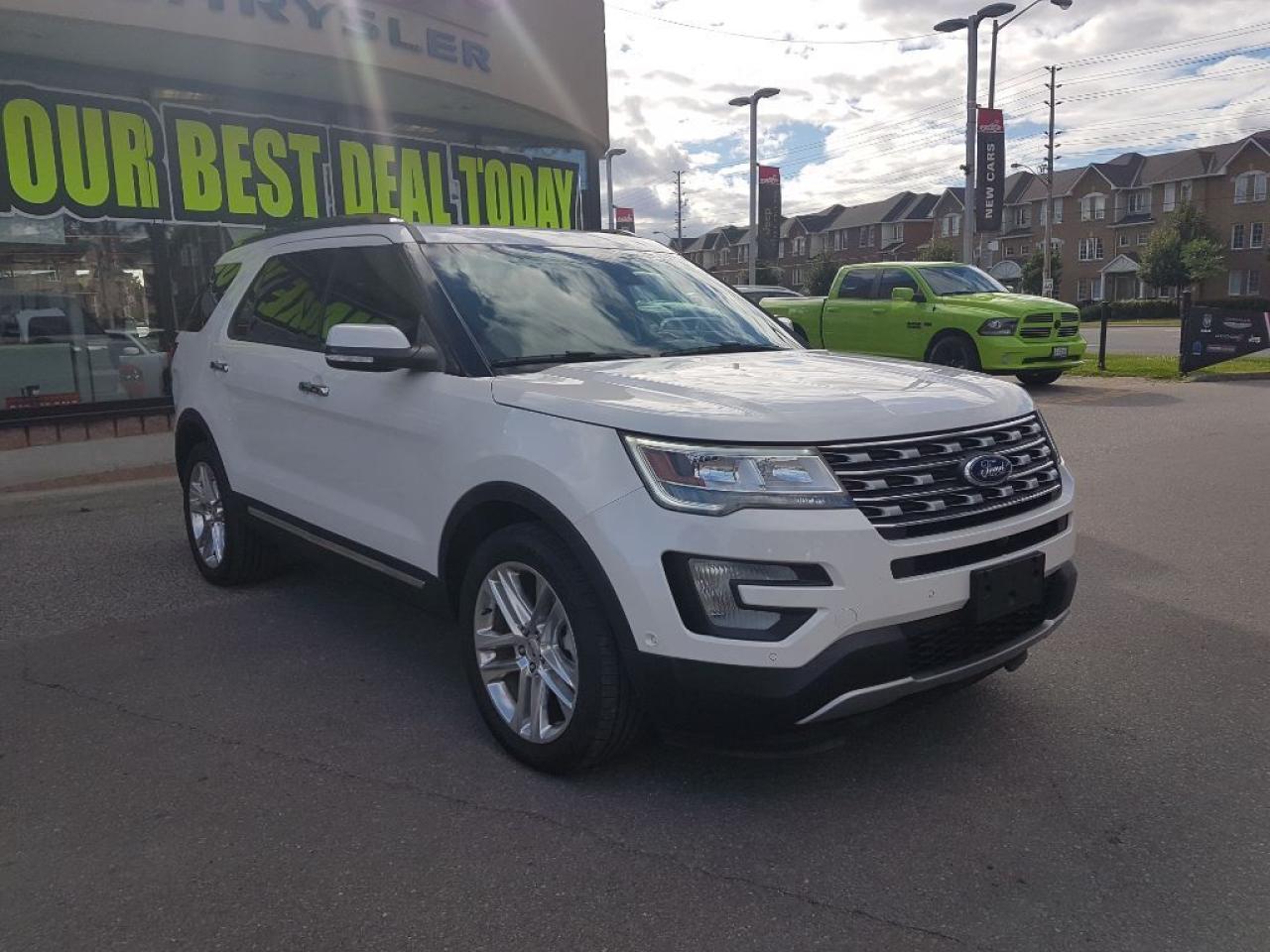 **2016 FORD EXPLORER LIMITED.. THIS NICE EXPLORER HAS LEATHER SEATS AND IS POWERED BY A 3.5L ENGINE LEATER SEATS AND MUCH MORE. ENJOY THE SUN WITH THE DUAL PANE PANORAMIC SUNROOF, HEATED AND COOLED SEATS,20" WHEELS,REMOTE START, REAR CAMERA, TOUCH SCREEN SYNC SYSTEM AND MUCH MORE. FINISHED IN WHITE WITH BLACK LEATHER, CLEAN CAR PROOF AND TWO SETS OF KEYS.FORMER DAILY RENTAL, VEHICLE LOCATED AT ROADSPORT CHRYSLER 2851 EGLINTON AVE EAST, 416-264-2501..