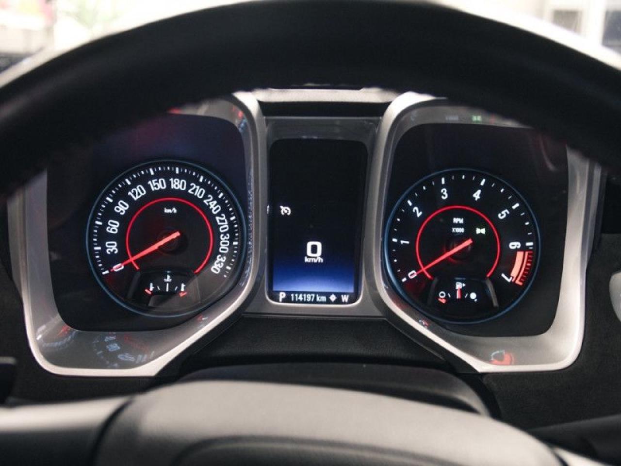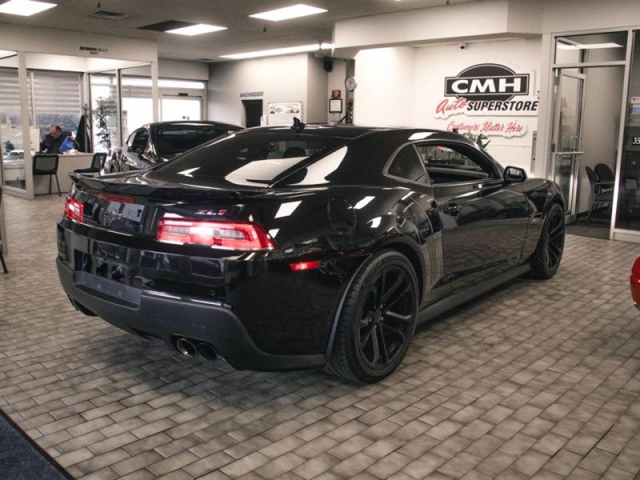 For tire-burning power and Hollywood looks, it doesn't get much better than the 2014 Chevrolet Camaro. For the 2014 Chevrolet Camaro, you'll instantly spot the car's sleeker front grille, new headlights and taillights, and minor changes all around. But the return of the Z/28 moniker adds a whole new level to Camaro performance this year.This coupe has 114,150 kms. It's black in colour and is major accident free based on the CARFAX Report . It has an automatic transmission and is powered by a 580HP 6.2L 8 Cylinder Engine.