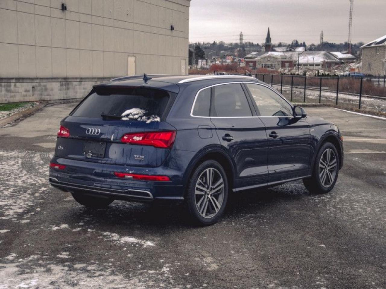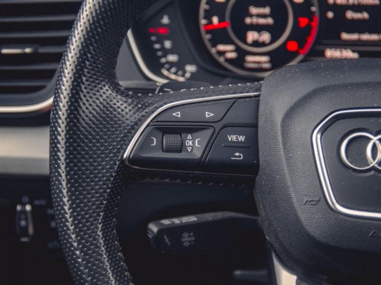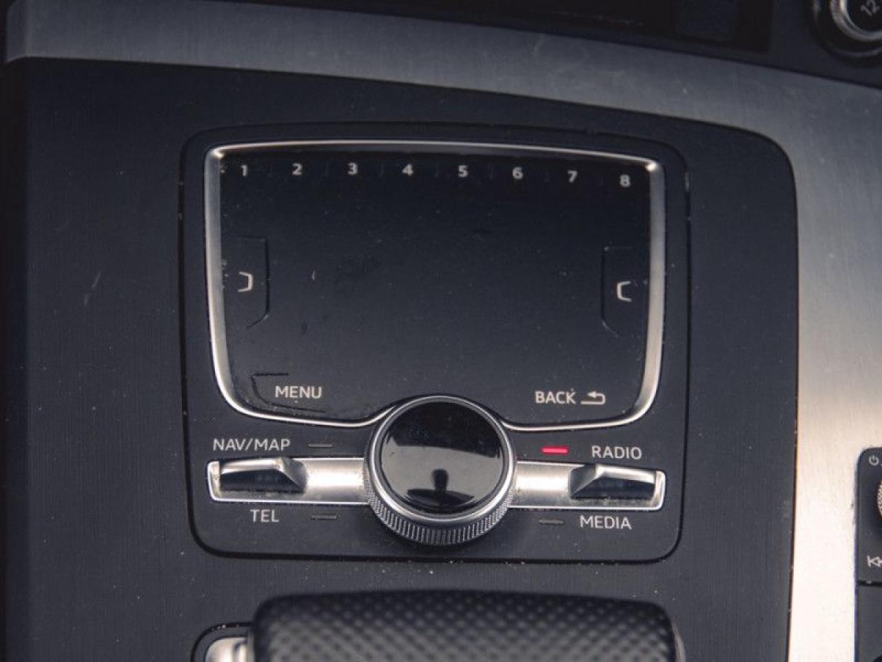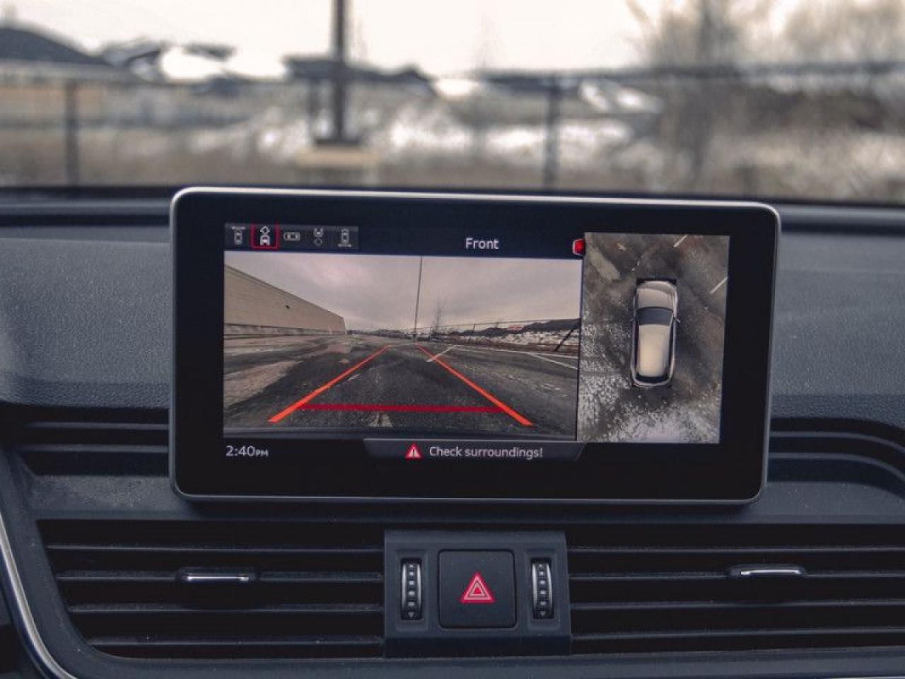 Our Q5's trim level is 2.0 TFSI quattro Technik. The Technik trim adds advanced technology to this versatile Q5. It comes with an 8.3-inch display radio with navigation, Bluetooth, SiriusXM, a USB port, and 19-speaker premium audio, a 360-degree camera, parking sensors, leather seats which are heated in front, a heated, leather-wrapped steering wheel with audio and cruise control, dual-zone automatic climate control, a power sunroof, a chrome grille, aluminum wheels, and more.