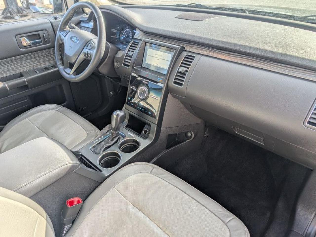 Our Flex's trim level is Limited AWD. Stepping up to this feature rich Flex Limited with all wheel drive is an excellent choice as it includes larger aluminum wheels, a useful power rear liftgate, chrome exterior accents, Ford's Gen 3 SYNC infotainment system with a larger 8 inch touchscreen and streaming audio, power pedals with memory and a genuine leather steering wheel. It also comes with a reverse sensing system and blind spot detection, remote keyless entry with a proximity key and push button start, power heated seats, cruise control, dual zone climate control, Ford Co-Pilot360 and much more.