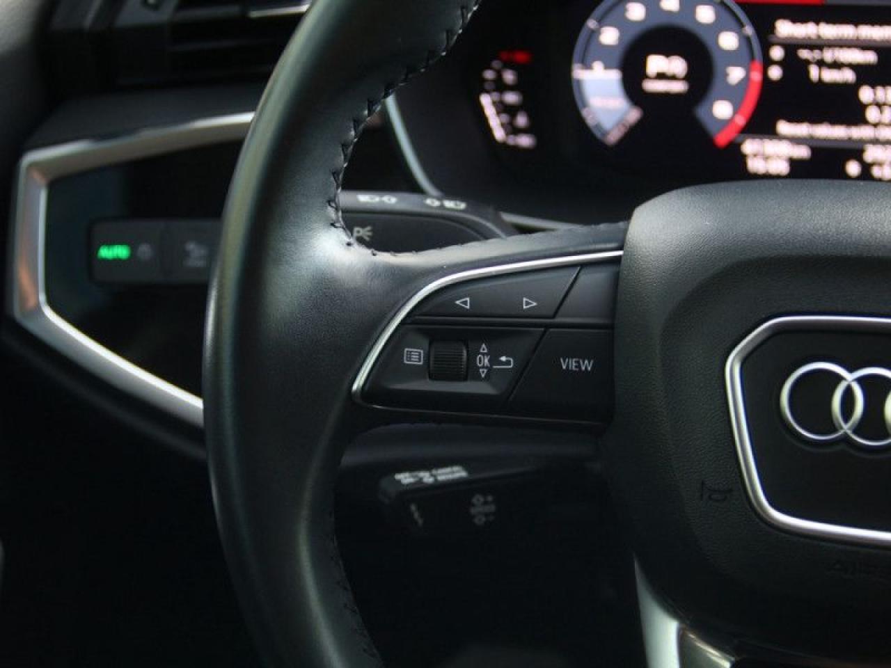 Our Q3's trim level is Komfort 45 TFSI quattro. This Q3 Komfort packs a big punch in a desirable package with a dual row sunroof, heated leather bucket seats, a heated leather steering wheel, proximity key with push button start, remote cargo access, voice activated LCD touch screen infotainment with Audi smartphone interface, and a rear backup camera. This small crossover does not fall short on style with a dual tailpipe, aluminum alloy wheels, a chrome grille, automatic LED lighting, fog lamps, and perimeter lights. This vehicle has been upgraded with the following features: Sunroof, Leather Seats, Heated Seats, Power Liftgate, Heated Steering Wheel, Forward Collision Mitigation, Led Lights.