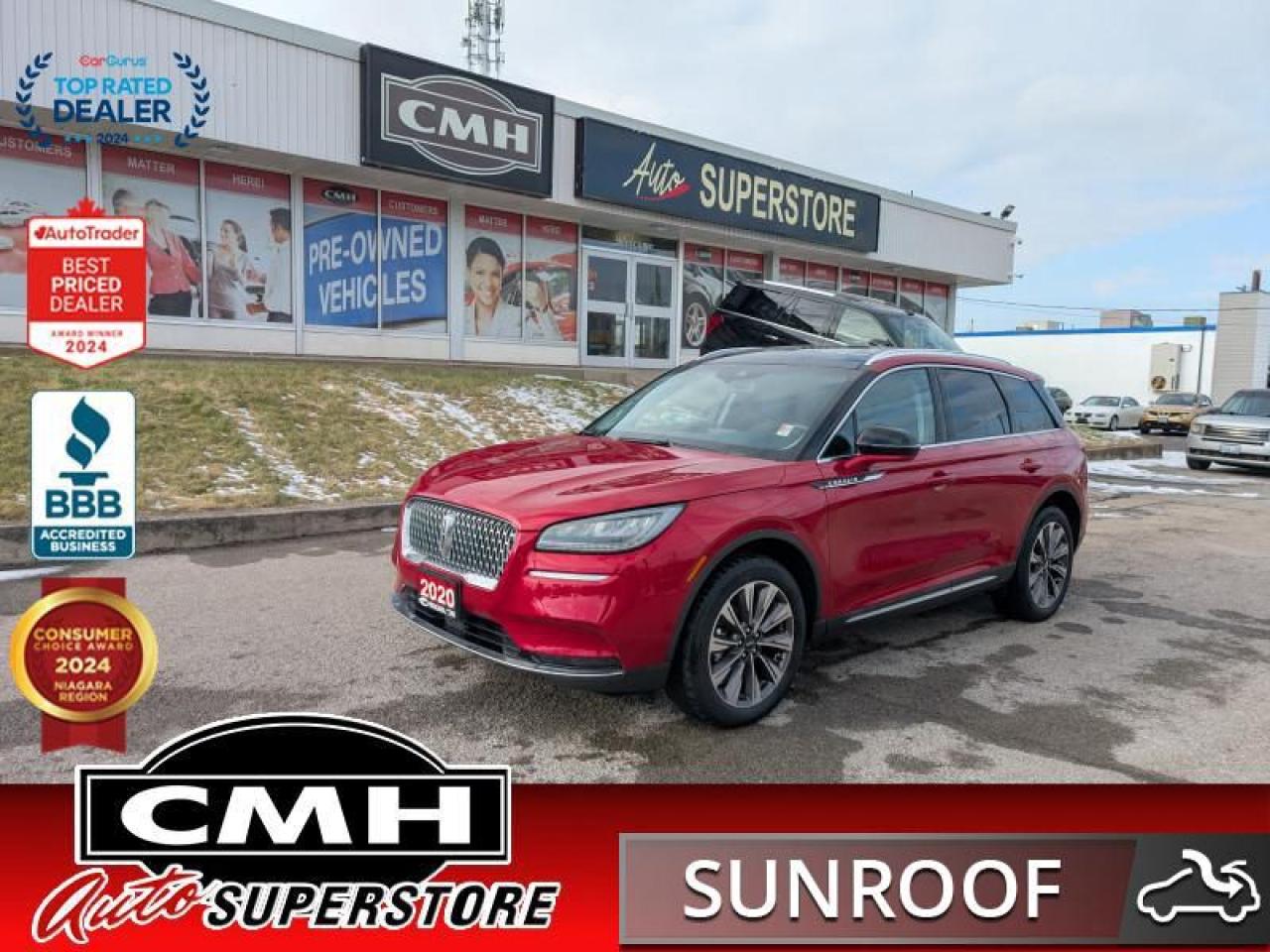 This 2020 Lincoln Corsair was designed to be an evolution of luxury. Taking the comfort and technology that we all expect from Lincoln and adding thrilling driving dynamics and family friendly functionality. For the next step in luxury compact SUVs, this intuitive, thrilling, and comforting Corsair is an easy choice.This SUV has 78,546 kms. It's red in colour . It has an automatic transmission and is powered by a 250HP 2.0L 4 Cylinder Engine.