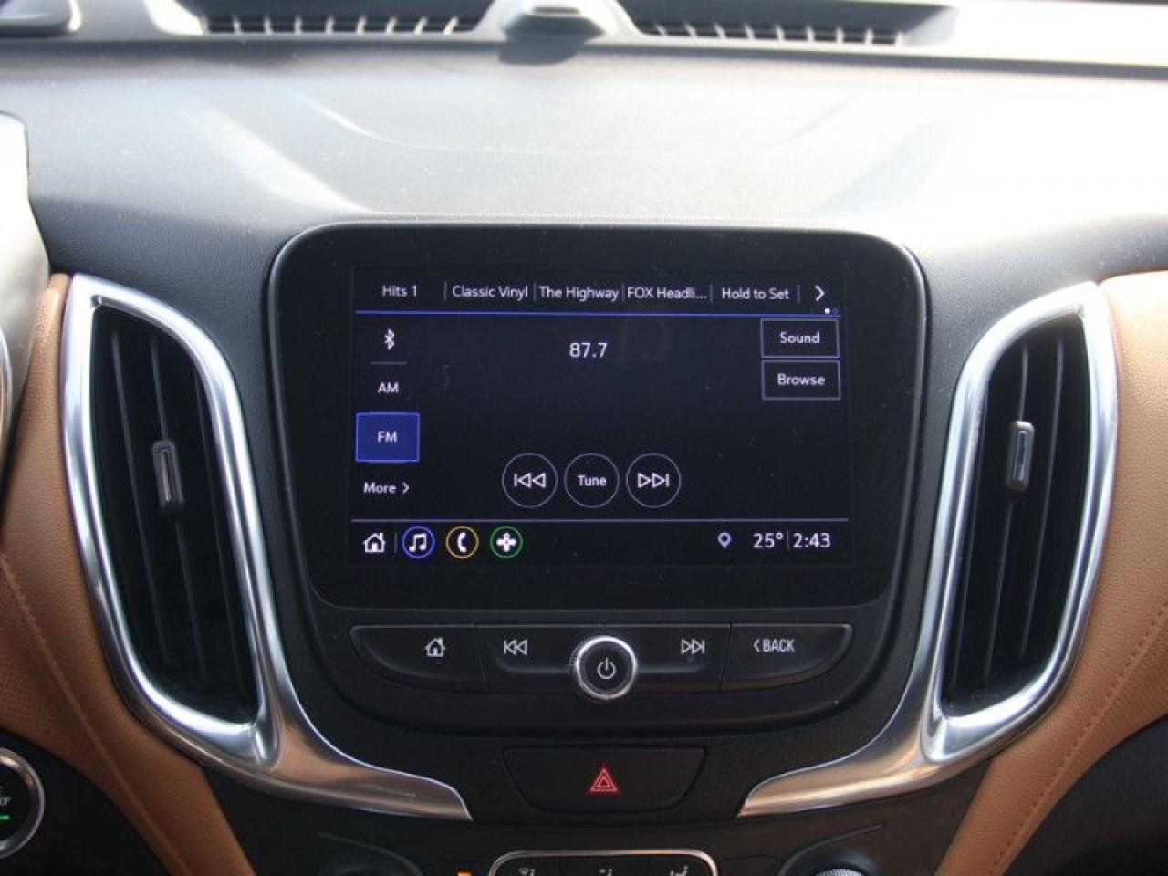 Our Equinox's trim level is Premier. Stepping up to this top of the line Equinox Premier is a wise choice as it comes loaded with luxurious leather seats, a power liftgate, larger aluminum wheels, HID headlights, a larger 8 inch touchscreen display with Apple CarPlay and Android Auto, wireless charging, an 8-way power driver seat with memory settings and dual-zone climate control. It also includes a remote engine start, heated front seats, 4G WiFi capability, lane keep assist and lane departure warning, forward collision alert, forward automatic emergency braking and pedestrian detection, Teen Driver technology, Bluetooth streaming audio, StabiliTrak electronic stability control and a split folding rear seat to make loading and unloading large objects a breeze. The Premier adds increased safety features as well, such as blind spot detection, rear cross traffic alert and rear park assist plus much more. This vehicle has been upgraded with the following features: Leather Seats, Power Tailgate, Aluminum Wheels, Apple Carplay, Android Auto, Remote Start, Heated Seats.