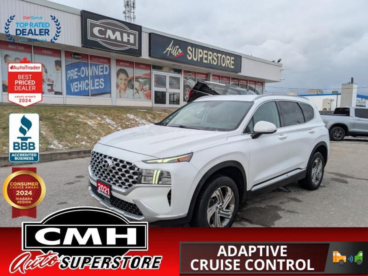 The Hyundai Santa Fe is all about making your drive safer. Beyond the solid chassis, you are surrounded by a suite of available driver assistance technologies actively scanning your surroundings to help keep you safe on your journeys. Theyve been developed to help alert you to, and even avoid, unexpected dangers on the road and include the worlds first Safe Exit Assist technology. Discover an SUV that helps you protect not only you and your passengers, but also the people around you. This SUV has 164,259 kms. It's white in colour . It has an automatic transmission and is powered by a 191HP 2.5L 4 Cylinder Engine.