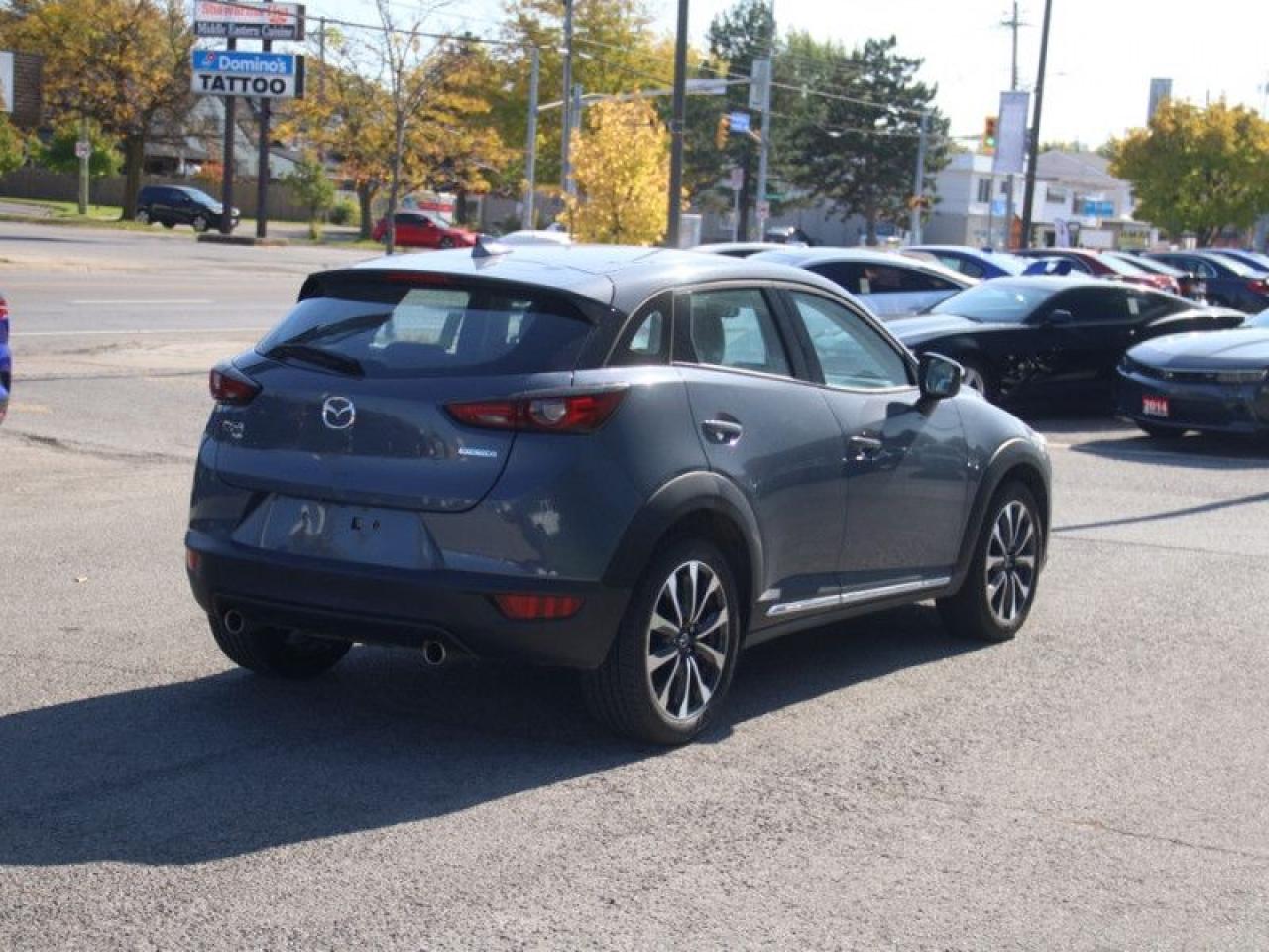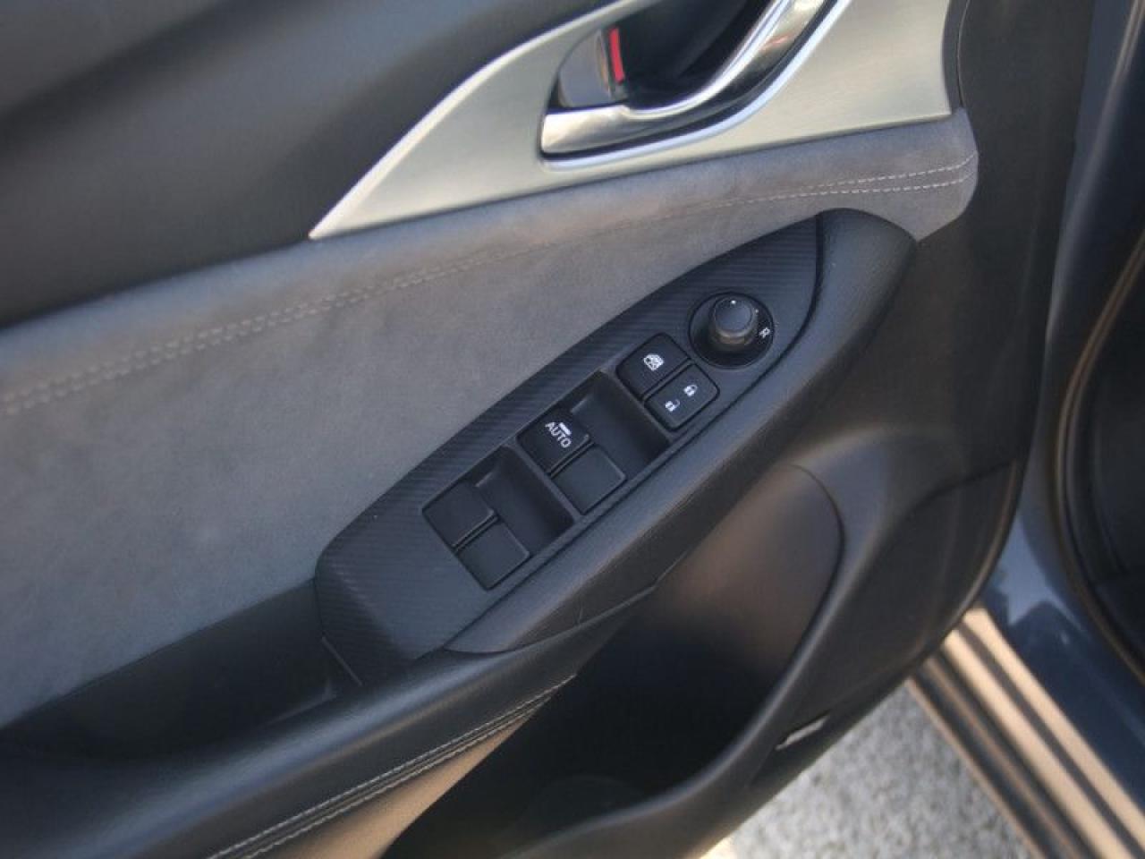 Our CX-3's trim level is GT. This CX-3 GT comes with plenty of amazing technology and luxurious features such as an active driving display on the windshield, larger and more stylish aluminum wheels, a 7 inch colour touchscreen with Mazda Connect, navigation, wireless Apple CarPlay and Android Auto. It also comes with a power sunroof, heated seats with power / memory settings for the driver, a heated steering wheel, distance pacing cruise control, lane departure warning, traffic sign recognition, Bose premium audio, blind spot monitoring, smart city brake support LED signature lighting and an advanced proximity keyless entry system. Additional features are plush leather seats, soft touch surfaces with unique stitching detail, suede interior trim and chrome exterior accents. This vehicle has been upgraded with the following features: Heads Up Display, Sunroof, Leather Seats, Navigation, Aluminum Wheels, Heated Seats, Heated Steering Wheel.