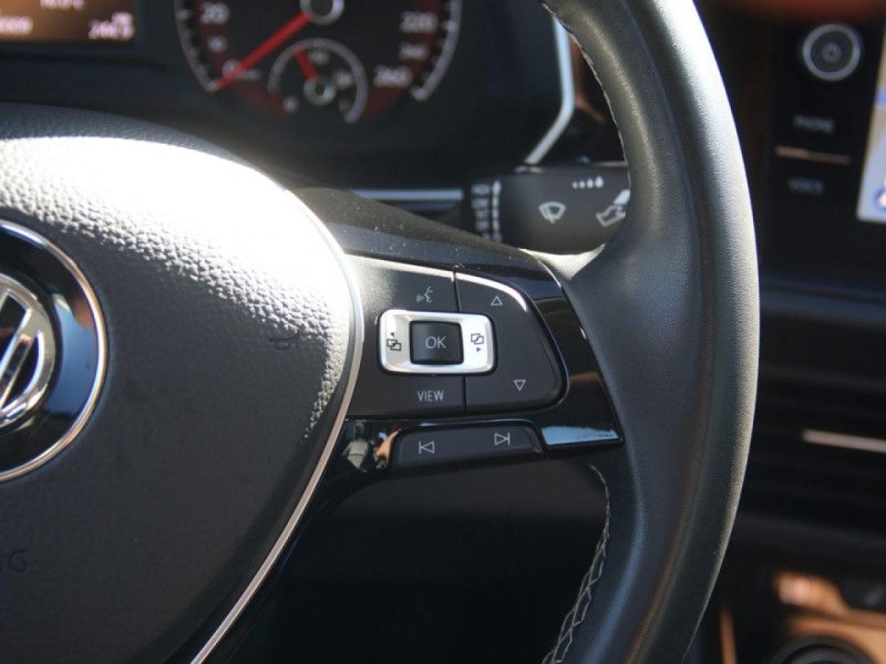 Our Jetta's trim level is Highline. Upgrade to this Jetta Highline and you'll get features like these aluminum wheels, a large Rail2Rail power sunroof, leatherette heated seats and a heated-leather wrapped steering wheel, fully automatic LED headlamps, a larger 8 inch touchscreen infotainment system with satellite navigation, Android Auto and Apple CarPlay, blind spot monitor with rear traffic alert, cruise control, a proximity key with remote keyless entry, a rear view camera and much more. This vehicle has been upgraded with the following features: Navigation, Sunroof, Blind Spot Detection, Heated Seats, Heated Steering Wheel, Led Headlights, Android Auto.