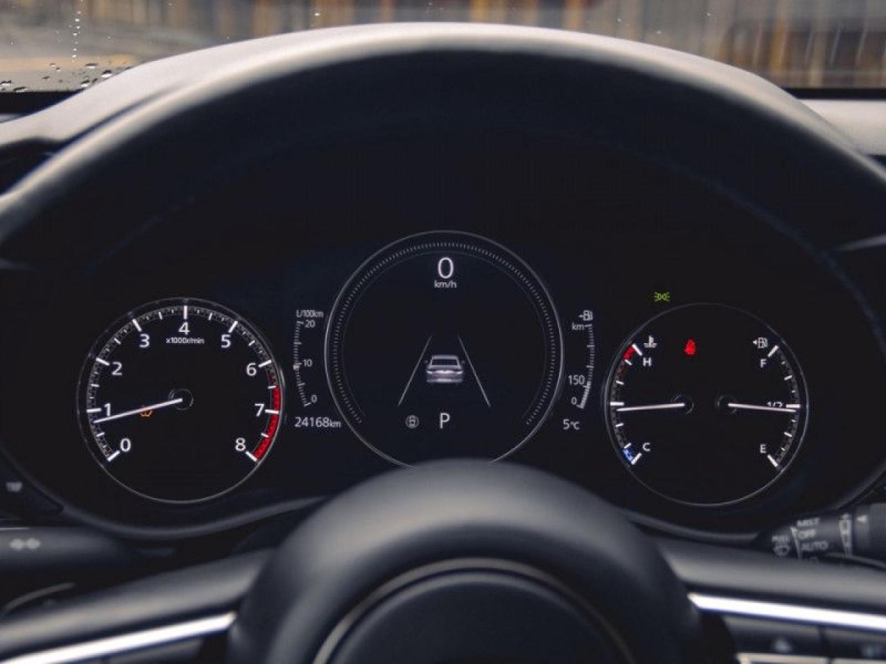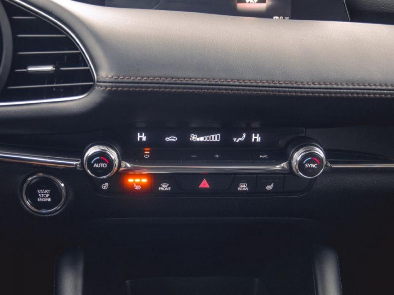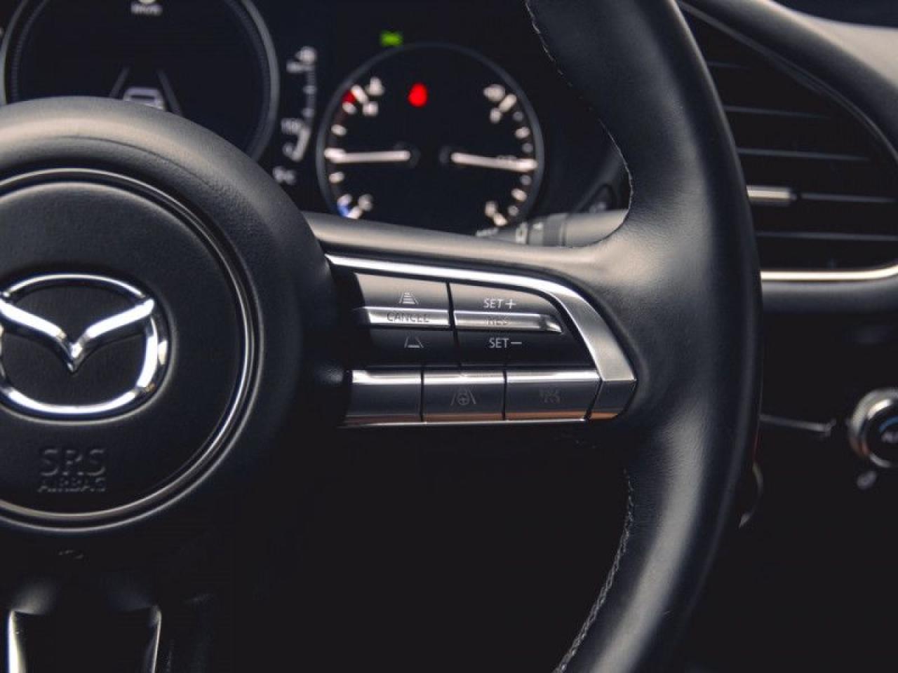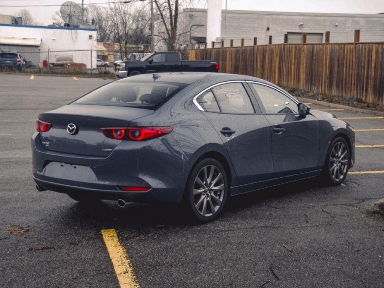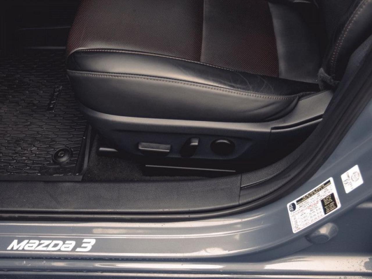 Our Mazda3's trim level is GT. Upgrading to this ultra premium Mazda3 GT is a great choice that includes a power sunroof, heads up display, leather heated seats, a luxurious heated steering wheel, dual-zone climate control and larger aluminum wheels. It also includes an adaptive headlight system, advanced keyless entry, and a 8.8 inch wide colour display that is paired with built in navigation, Android Auto, Apple CarPlay and Mazda Connect. Additional features includes SiriusXM, smart city brake support, lane-keep assist with lane departure warning, advanced blind spot monitoring with rear cross traffic alert, a 360 degree camera, forward collision braking, front and rear park assist, and a 10 way power driver seat to add safety and convenience. This vehicle has been upgraded with the following features: Head Up Display, Sunroof, Navigation, Leather Seats, Heated Steering Wheel, Lane Keep Assist, Adaptive Cruise.
