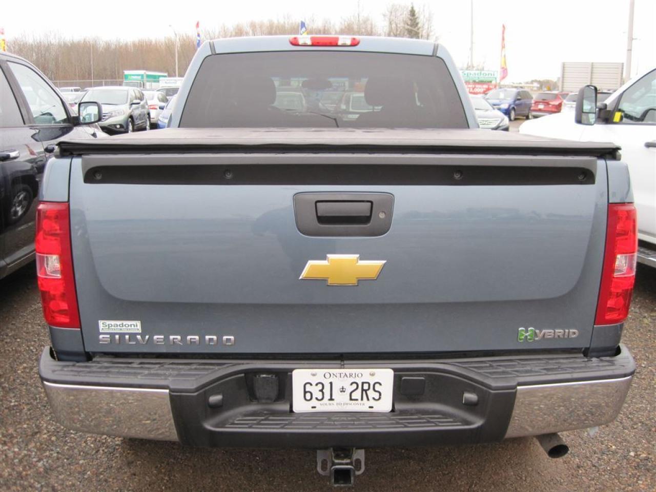 Options: Cloth Interior, Air Conditioning, Dual Zone Climate Control, Cruise Control, Power Windows, Power Door Locks, Power Mirrors, Remote Keyless Entry, Steering Wheel Audio Controls, AM/FM/CD/MP3 Player, XM Satellite Radio, Bluetooth (for Phone) Power Train / Exterior: Hybrid Vehicle, LPO Identifier, 3.08 Axle Ratio, GVWR 3311 KG (7300 LB), H.D. Trailering Equipment, Tonneau Cover, 18 Chrome Aluminum Wheels, Safety Features: ABS Braking System, Dual Front Air bags, Side Curtain Air bags, Child Seat Restraints, Seat Belt Adjusters, Rear Window Defogger, Stabilitrak Stability Control, Traction Control, Tire Pressure Monitor, Power Outside Heated Mirrors Warranty: Balance of Manufactures Extended Warranty