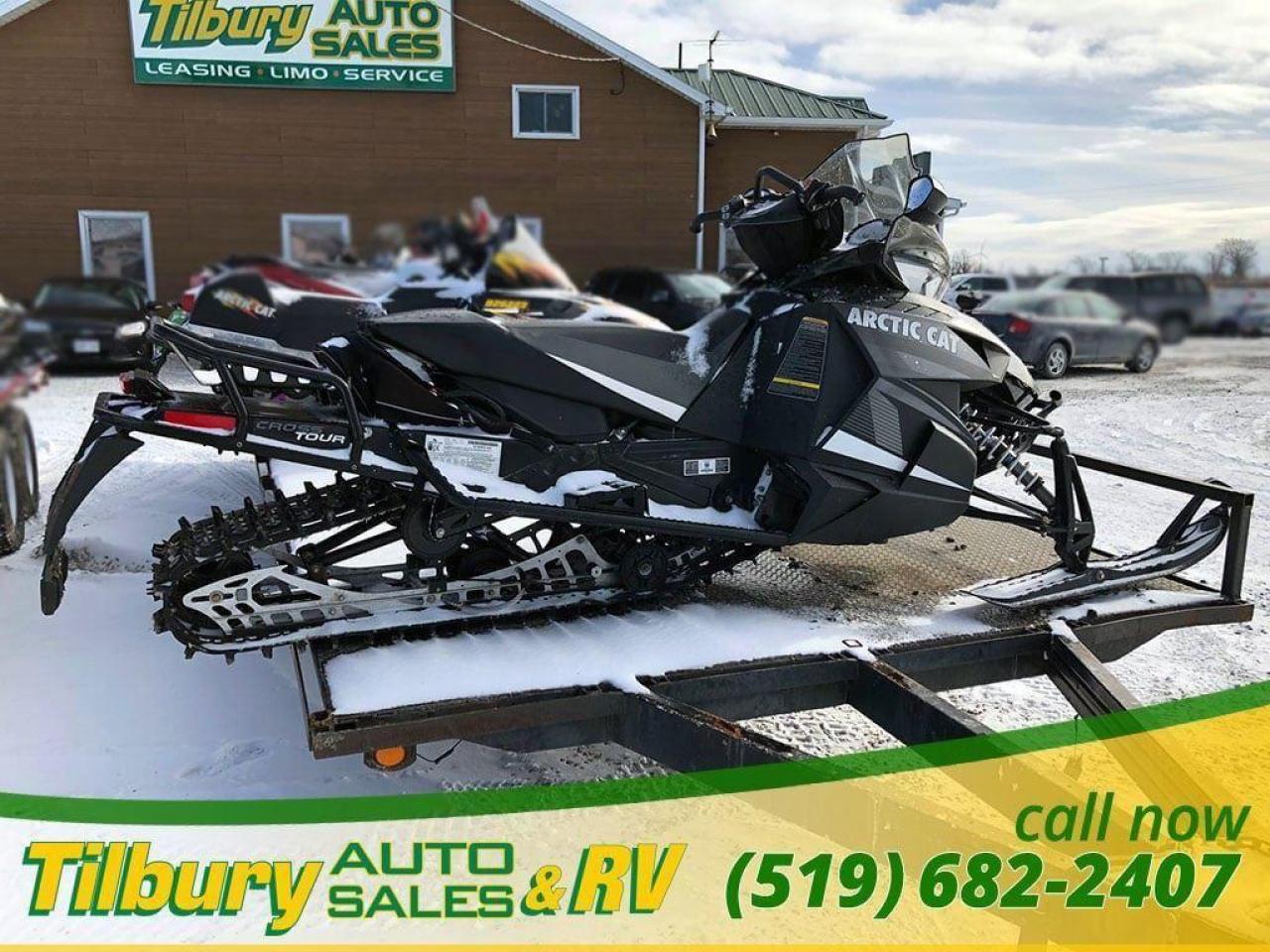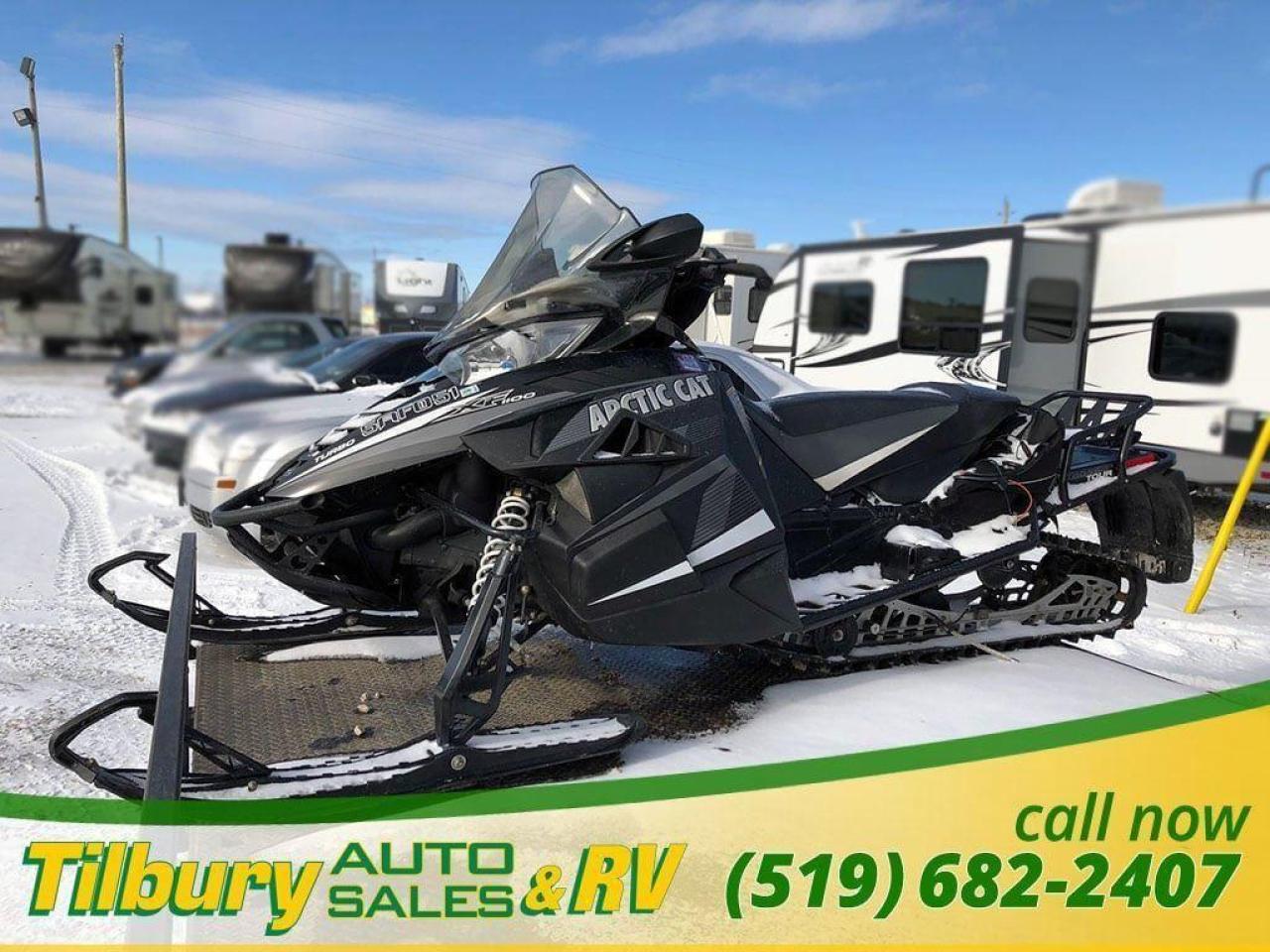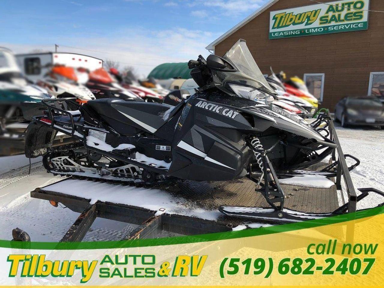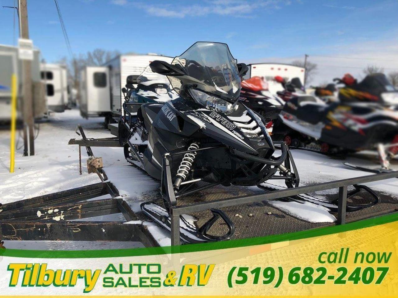 Call us at 519-682-2407 https://www.youtube.com/watch?v=dFgZCascafg Push-button reverse, dual halogen headlight (2-bulb), front sport bumper, heavy-duty MRP rear bumper, electric start, heated seat, adjustable handlebar, mid-height windshield, deluxe digital/analog gauge, electric gas gauge, low oil light, coolant overheat light, clock, altimeter, accessory outlet, high/low hand & thumb warmers, belt holder, mountain handlebar, rear storage bag, handlebar storage bag, cargo rack, mirrors, air pump. Length x Width 317.5 cm x 121.9 cm Ski Stance 106.7-109.2 cm adjustable Ski Type / Runner Mountain 15.2 cm/Dual skag w/carbide Track Type 38.1 cm x 358.1 cm Cobra / 3.2 cm
