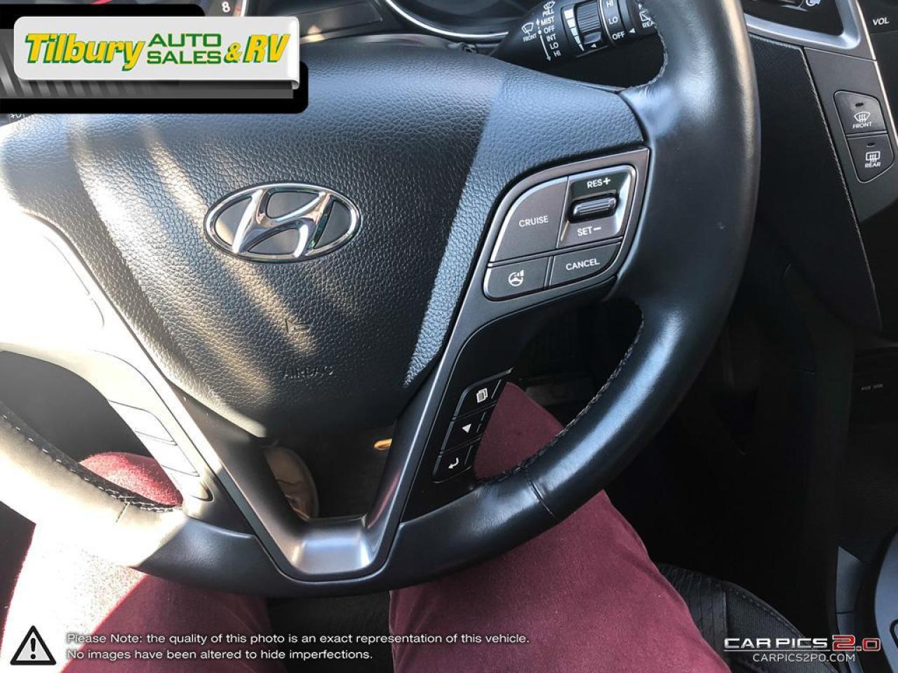 17-inch alloy wheels, a rear spoiler, cruise control, a trip computer, full power accessories, air-conditioning, a tilt-and-telescoping steering wheel, cloth upholstery, 40/20/40 split-folding rear seats, Bluetooth phone connectivity, Hyundai's Blue Link telematics system and a six-speaker audio system with CD player, satellite radio and USB/iPod integration. Handles well.  heated stering wheel and heated rear leather seats, backup camera with green-yellow-red warning lines is extremely accurate.