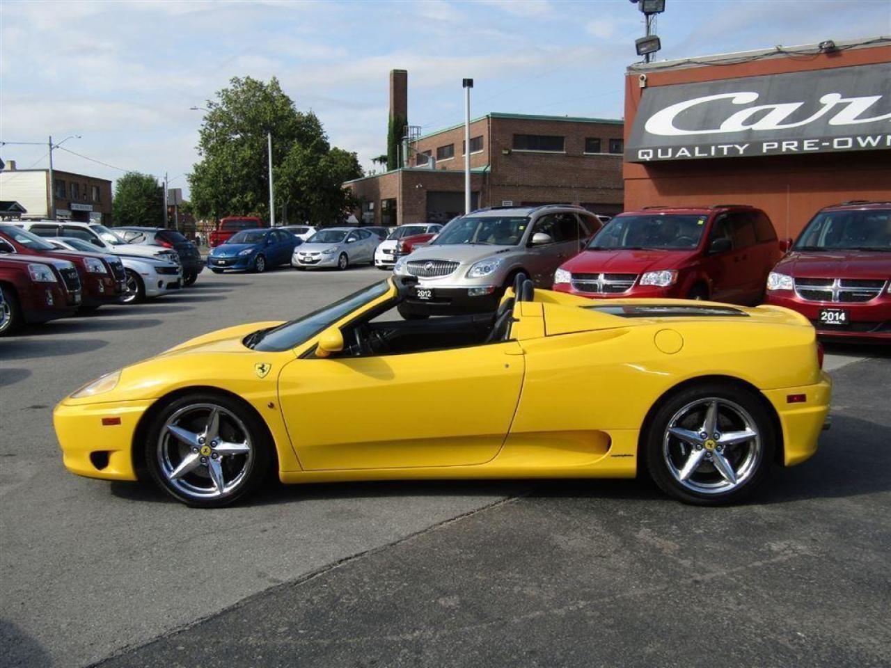 ABSOLUTELY STUNNING GAILLO MODENA YELLOW CONVERTIBLE WITH ONLY 62,280 KM! MUST SEE THIS 360 SPIDER F1 TO APPRECIATE THE POWER, PERFORMANCE, AND THE BEST PRODUCTION SPIDER MARANELLO HAD EVER PRODUCED AT THAT TIME! REGULARILY SERVICED, TIMING BELT SERVICE COMPLETED MAY-26-2017 . VEHICLE CURRENTLY HAS BLACK WHEELS BUT COMES WITH THE OEM WHEELS SEEN IN THE PHOTOS. CALL US TODAY AT (877) 663-9248 TO SCHEDULE YOUR TEST DRIVE ... Everything we do is focused on providing absolute clarity so that you can make an informed, worry free decision with confidence. No Hassles, No Haggles, No Hidden Administration or other fees, just our best price plus taxes and licensing! Our prices include full comprehensive inspection, reconditioning, safety check, professional detailing, and free car-proof report. Family owned and operated since 2001, long standing UCDA and OMVIC member with over 10,000 vehicles sold! We are in the people business and treat everybody like family by providing superior customer service and top Quality Certified Pre-owned Used Cars! To simplify your experience we provide fast turnarounds and same day approvals. Our dedicated Finance specialists offer: • Flexible and competitive financing options including prime and non-prime • Comprehensive warranty packages, and after-market services • Unique partnership with all the major banks offering programs for new Canadians, poor credit, credit rebuilding, and no credit • Buy now and do not pay any payments for 180 days O.A.C. The interest for that period will be amortized over the full length of the loan Give us an opportunity, and you will see why Cars Unlimited Niagara is one of the fastest growing pre-owned car dealership and the premier destination for luxury, performance, and exotic vehicles in the region! Please visit our website www.carsunlimitedniagara.com or contact our dealership at (877) 663-9248 with any questions in regards to verifying details on options or features of our vehicles ...!