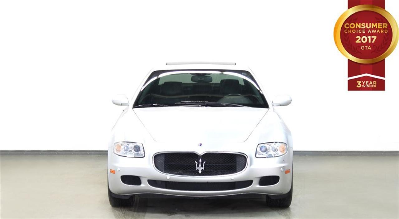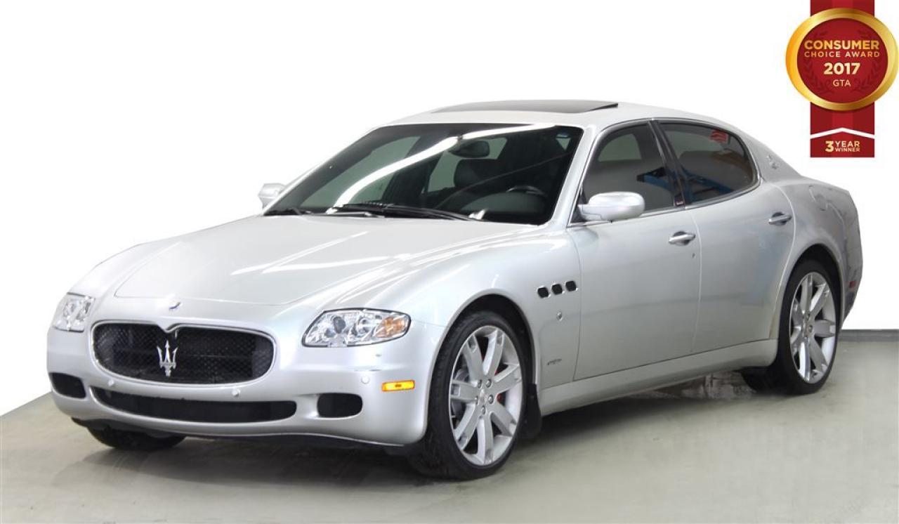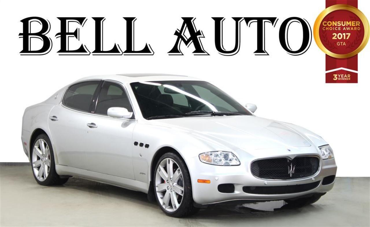 COME CHECK OUR INVENTORY! THIS SPORTY AND LUXURIOUS MASERATI QUATTROPORTE IS THE PERFECT CAR FOR YOU!!! WITH IT'S SLEEK BODY AND 4.2L ENGINE YOUR DRIVE WILL ALWAYS BE A SMOOTH ONE! COME IN FOR A TEST DRIVE TODAY ! SOME GREAT FEATURES YOU CAN FIND ARE: -NAVIGATION - HEATED SEATS AND SO MUCH MORE! VEHICLE CONDITIONING: This vehicle has been kept in fantastic condition. This car will have you feeling like your driving on a cloud with its amazing performance. Interior is immaculate and holds no odor or stains on either the carpets or headliner, as well the leather seats have no tears in them. IF YOU WOULD LIKE MORE INFORMATION ON THIS VEHICLE FEEL FREE TO CALL 1- 877- 854- 4872 OR COME TO BELL AUTO TODAY TO VIEW THE CAR! FINANCE ANY CREDIT! ~ ACCEPT VEHICLE TRADE-IN'S! ~ COME TODAY FOR YOU NEW VEHICLE! You will have a pleasant shopping experience that is fun, informative, and never high pressured. Stop by our dealership or give us a call for more information. All vehicle's can be Safety Standards Certificate for an additional $1.999.00, if no Safety Standards Certificate then as per OMVIC Regulations the vehicle is deemed to be not drivable, no Safety Standards Certificate. At Bell Auto our number one goal is to provided excellent customer service to all of our customers. We offer the lowest vehicle prices in the market in addition to best financial banks available to provide you with the lowest and most affordable interest rates & monthly payments. In addition we have two certified mechanical and a mechanical shop, detailing and service department in the back of our dealership. Our customer relationship means the most to our company as we have been in business for 16 plus years, with a selection of inventory of over 200 vehicles. Come today to our spacious family environment showroom, or staff is delighted to meet all of you. Bell Auto is a OMVIC Dealership that has a A+ Rating on the Better Business Bureau, 2 Year winners of the Consumer Choice Awards for the Best Dealership In the G.T.A. and Surrounding Areas, The Readers Choice Award Winners for Detailing, Over All Dealership, Import Dealership and Used Car Dealership