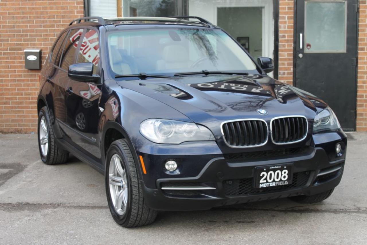 BEAUTIFUL ONE OWNER BMW X5 SUV! LOCAL ONTARIO VEHICLE! FULLY LOADED SPORT PREMIUM PACKAGE WITH ULTRA LOW KILOMETERS! 7 PASSENGER SUV WITH NO ACCIDENTS! MONACO BLUE METALLIC ON BEIGE LEATHER INTERIOR! LOADED WITH PARK DISTANCE CONTROL (PDC) - BACKUP SENSORS, KEYLESS ENTRY, BLUETOOTH CONNECTIVITY, HEATED SEATS, PANORAMIC SUNROOF, UPGRADED SPORT WHEELS, DUAL ZONE CLIMATE CONTROL PLUS REAR CLIMATE CONTROL, FOG LIGHTS, AUX, USB, CD/RADIO AM FM, PLUS SO MUCH MORE! DEALER MAINTAINED! ALL SERVICE UP TO DATE! THIS VEHICLE IS CARPROOF VERIFIED - CLEAN TITLE - NO ACCIDENTS! THIS X5 COMES CERTIFIED, E-TESTED, AND ALSO COMES WITH A COMPLIMENTARY 24 MONTH POWERTRAIN WARRANTY INCLUDED IN THE PRICE! FINANCING AVAILABLE - OAC! *NO HIDDEN FEES* YOU JUST PAY PRICE PLUS TAX!