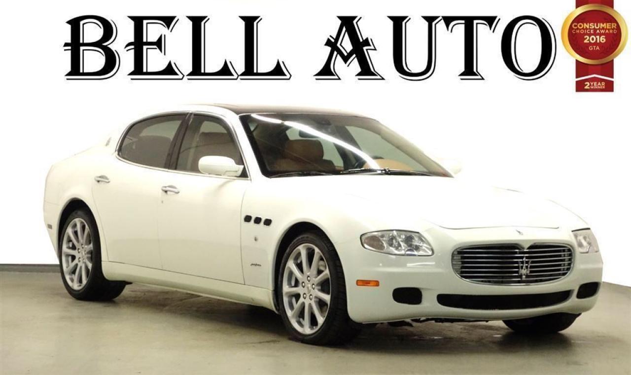 BLOWOUT SALE *** LOWER PRICE BY $5000**LOW KILOMETER VEHICLE** CLASS AND PERFORMANCE IS WHAT THE MASERATI QUATTROPORTE IS MADE OUT OF! DONT MISS OUT ON THIS AMAZING DEAL FOR AN ITALIAN BEAUTY! SOME GREAT FEATURES ARE: BLUETOOTH ALLOY-WHEELS LEATHER INTERIOR KEY-LESS ENTRY WOOD TRIM INTERIOR AND SO MUCH MORE! IF YOU WOULD LIKE MORE INFORMATION ON THIS VEHICLE FEEL FREE TO CALL 1- 877- 854- 4872 OR COME TO BELL AUTO TODAY TO VIEW THE CAR! THE CONDITION:This car has been kept in great condition and is damage free. The body is very well maintained and does not have a spot of rust on it. The seats are clean and have no rips or stains on them as well as the interior carpets and headliner have no lingering odor. This car is in great standing and will have you smiling every time you drive it. WE FINANCE ANY CREDIT! ~ ACCEPT VEHICLE TRADE-IN'S! ~ COME TODAY FOR YOU NEW VEHICLE! You will have a pleasant shopping experience that is fun, informative, and never high pressured. Stop by our dealership or give us a call for more information. All vehicle's can be Certified & E-Tested for an additional $1,999.00, if not Certified & E-Test then as per OMVIC Regulations the vehicle is deemed to be not drivable, not e-tested. At Bell Auto our number one goal is to provided excellent customer service to all of our customers. We offer the lowest vehicle prices in the market in addition to best financial banks available to provide you with the lowest and most affordable interest rates & monthly payments. In addition we have two certified mechanical and a mechanical shop, detailing and service department in the back of our dealership. Our customer relationship means the most to our company as we have been in business for 16 plus years, with a selection of inventory of over 200 vehicles. Come today to our spacious family environment showroom, our staff is delighted to meet all of you. Bell Auto is a OMVIC Dealership that has a A+ Rating on the Better Business Bureau, 2 Year winners of the Consumer Choice Awards for the Best Dealership In the G.T.A. and Surrounding Areas, The Readers Choice Award Winners for Detailing, Over All Dealership, Import Dealership and Used Car Dealership.