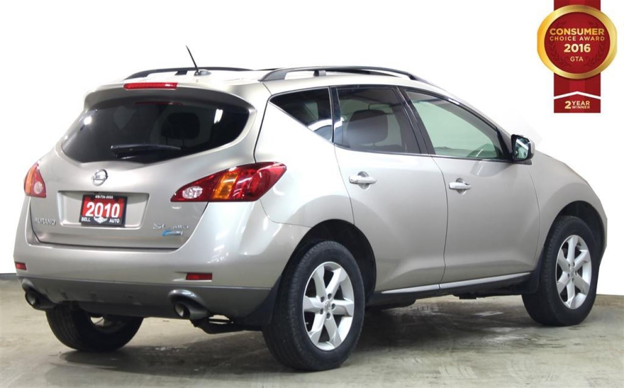SAFE AND RELIABLE, THIS NISSAN MURANO IS THE PERFECT VEHICLE FOR YOU! DON'T MISS OUT ON THIS AMAZING OFFER! SOME GREAT FEATURES YOU CAN FIND ARE: -ALL WHEEL DRIVE -BACK UP CAMERA -BLUETOOTH AND SO MUCH MORE! VEHICLE CONDITIONING: This vehicle has been kept in fantastic condition. This car will have you feeling like your driving on a cloud with its amazing performance. Interior is immaculate and holds no odor or stains on either the carpets or headliner, as well the leather seats have no tears in them. IF YOU WOULD LIKE MORE INFORMATION ON THIS VEHICLE FEEL FREE TO CALL 1- 877- 854- 4872 OR COME TO BELL AUTO TODAY TO VIEW THE CAR! FINANCE ANY CREDIT! ~ ACCEPT VEHICLE TRADE-IN'S! ~ COME TODAY FOR YOU NEW VEHICLE! You will have a pleasant shopping experience that is fun, informative, and never high pressured. Stop by our dealership or give us a call for more information. All vehicle's can be Safety Standards Certificate for an additional $399, if no Safety Standards Certificate then as per OMVIC Regulations the vehicle is deemed to be not drivable, no Safety Standards Certificate. At Bell Auto our number one goal is to provided excellent customer service to all of our customers. We offer the lowest vehicle prices in the market in addition to best financial banks available to provide you with the lowest and most affordable interest rates & monthly payments. In addition we have two certified mechanical and a mechanical shop, detailing and service department in the back of our dealership. Our customer relationship means the most to our company as we have been in business for 16 plus years, with a selection of inventory of over 200 vehicles. Come today to our spacious family environment showroom, or staff is delighted to meet all of you. Bell Auto is a OMVIC Dealership that has a A+ Rating on the Better Business Bureau, 2 Year winners of the Consumer Choice Awards for the Best Dealership In the G.T.A. and Surrounding Areas, The Readers Choice Award Winners for Detailing, Over All Dealership, Import Dealership and Used Car Dealership