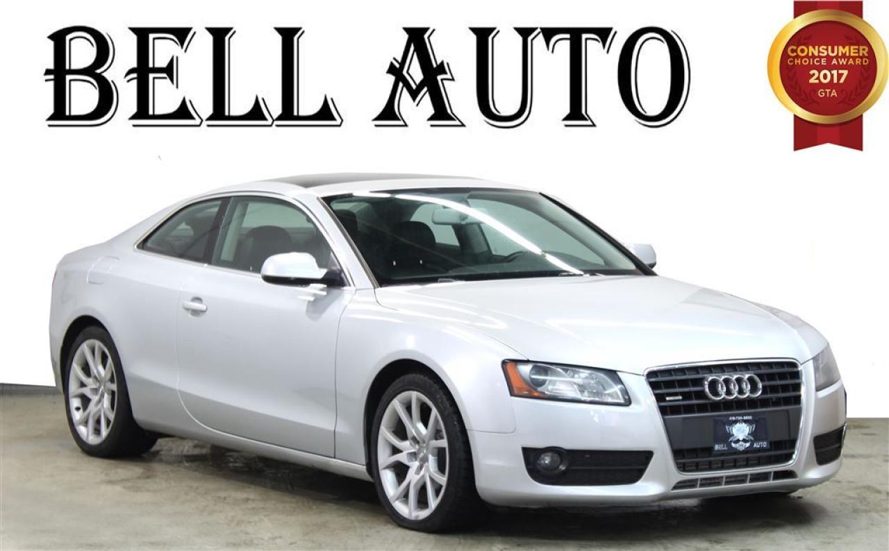 DONT MISS OUT ON THIS AMAZING AUDI A5! LUXURY AND POWER HAVE NEVER LOOKED SO GOOD! SLEEK DESIGN AND 2.0L ENGINE WILL HAVE YOU ZOOMING AROUND IN STYLE! COME IN AND TAKE A LOOK AT OUR NEW INVENTORY EVERY WEEK! SOME GREAT FEATURES YOU CAN FIND ARE: -SUNROOF -HEATED MIRRORS -HEATED SEATS AND SO MUCH MORE! VEHICLE CONDITIONING: This vehicle has been kept in fantastic condition. This car will have you feeling like your driving on a cloud with its amazing performance. Interior is immaculate and holds no odor or stains on either the carpets or headliner, as well the leather seats have no tears in them. IF YOU WOULD LIKE MORE INFORMATION ON THIS VEHICLE FEEL FREE TO CALL 1- 877- 854- 4872 OR COME TO BELL AUTO TODAY TO VIEW THE CAR! FINANCE ANY CREDIT! ~ ACCEPT VEHICLE TRADE-IN'S! ~ COME TODAY FOR YOU NEW VEHICLE! You will have a pleasant shopping experience that is fun, informative, and never high pressured. Stop by our dealership or give us a call for more information. All vehicle's can be Safety Standards Certificate for an additional $399, if no Safety Standards Certificate then as per OMVIC Regulations the vehicle is deemed to be not drivable, no Safety Standards Certificate. At Bell Auto our number one goal is to provided excellent customer service to all of our customers. We offer the lowest vehicle prices in the market in addition to best financial banks available to provide you with the lowest and most affordable interest rates & monthly payments. In addition we have two certified mechanical and a mechanical shop, detailing and service department in the back of our dealership. Our customer relationship means the most to our company as we have been in business for 16 plus years, with a selection of inventory of over 200 vehicles. Come today to our spacious family environment showroom, or staff is delighted to meet all of you. Bell Auto is a OMVIC Dealership that has a A+ Rating on the Better Business Bureau, 2 Year winners of the Consumer Choice Awards for the Best Dealership In the G.T.A. and Surrounding Areas, The Readers Choice Award Winners for Detailing, Over All Dealership, Import Dealership and Used Car Dealership