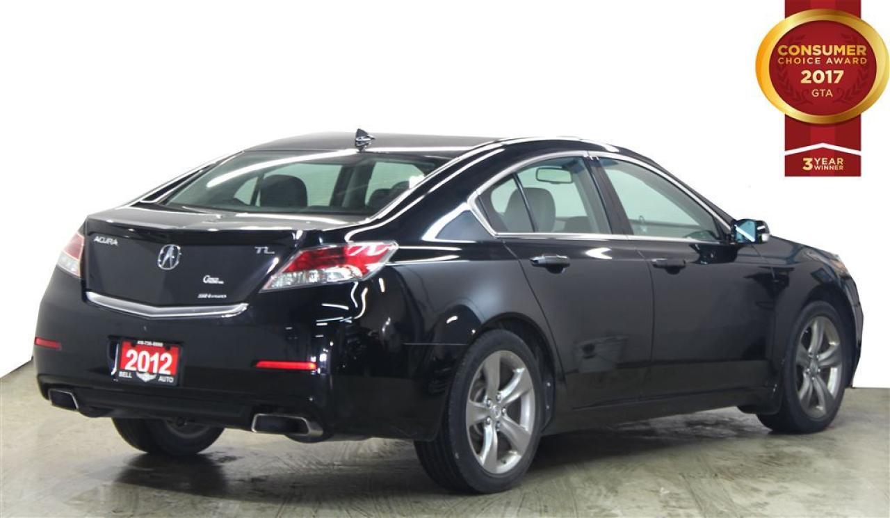 At Bell Auto our number one goal is to provided excellent customer service to all of our customers. We offer the lowest vehicle prices in the market in addition to best financial banks available to provide you with the lowest and most affordable interest rates & monthly payments. In addition, we have two certified mechanics and a mechanical shop, detailing and service department in the back of our dealership. Our customer relationship means the most to our company as we have been in business for 16 plus years, with a selection of inventory of over 200 vehicles. Come today to our spacious family environment showroom, or staff is delighted to meet all of you. You will have a pleasant shopping experience that is fun, informative, and never high pressured. Stop by our dealership or give us a call for more information. All vehicle's can be Safety Standards Certificate for an additional $399, if no Safety Standards Certificate then as per OMVIC Regulations the vehicle is deemed to be not drivable, no Safety Standards Certificate. Bell Auto is a OMVIC Dealership that has an A+ Rating on the Better Business Bureau, 3 Year winners of the Consumer Choice Awards for the Best Dealership In the G.T.A. and Surrounding Areas, The Readers Choice Award Winners for Detailing, Over All Dealership, Import Dealership and Used Car Dealership. Come, step into our fabulous show room where our knowledgeable staff and well versed sales consultants are ready to aid in searching for your right fit. This 2012 Black all-wheel drive Acura TL offers an elegantly executed leather interior design, as well as top shelf amenities, such as: navigation, back camera, seat memory and a headlight cleaning system.