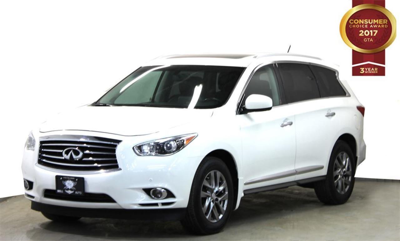Here it is! Hurry and take advantage now! Familiarize yourself with the 2013 INFINITI JX35! A great vehicle and a great value! This vehicle has achieved Certified Pre-Owned status, by passing INFINITI's comprehensive certification process. INFINITI prioritized practicality, efficiency, and style by including: power front seats, a roof rack, and remote keyless entry. It features an automatic transmission, all-wheel drive, and a 3.5 liter 6 cylinder engine. Our sales staff will help you find the vehicle that you've been searching for. We'd be happy to answer any questions that you may have. Stop in and take a test drive! All vehicle's can be Safety Standards Certificate for an additional $399, if no Safety Standards Certificate then as per OMVIC Regulations the vehicle is deemed to be not drivable, no Safety Standards Certificate