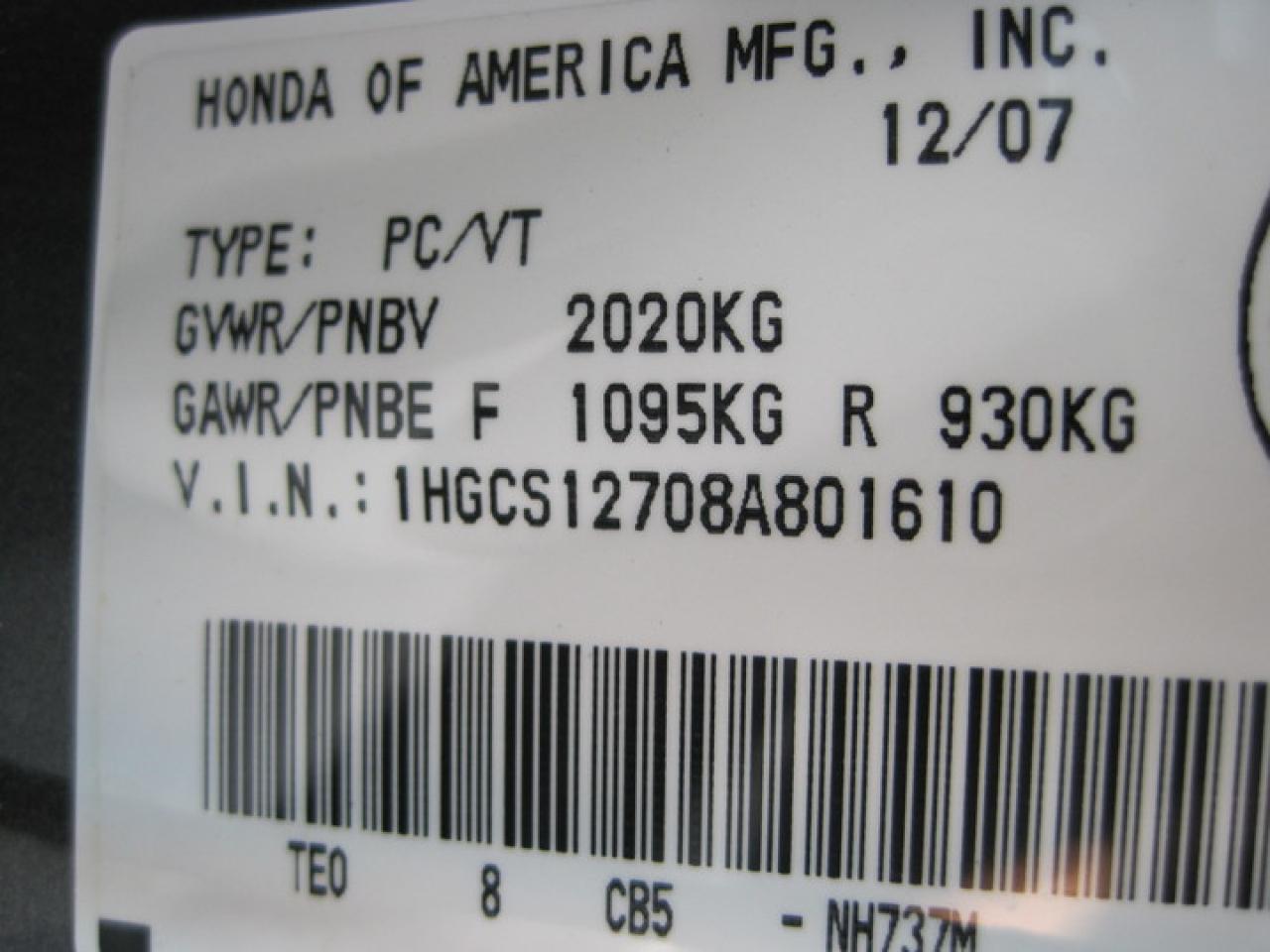 1HGCS12708A801610
