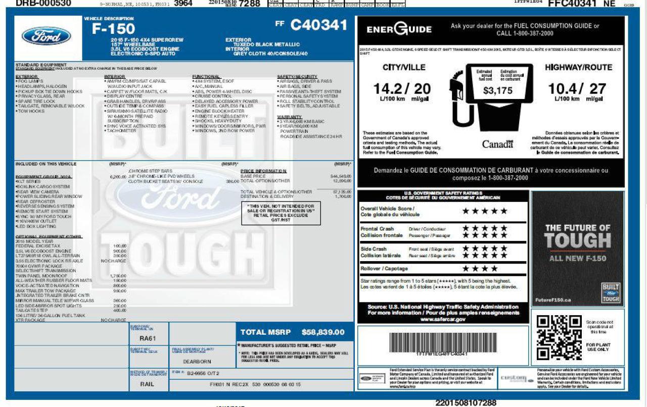 F 150 CREW CAB 4X4 ÉCOBOOST XTR FULL ÉQUIPÉ! TOIT OUVRANT, GPS, ECRAN TACTILE, CAMERA DE RECUL