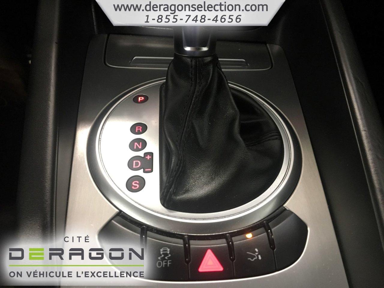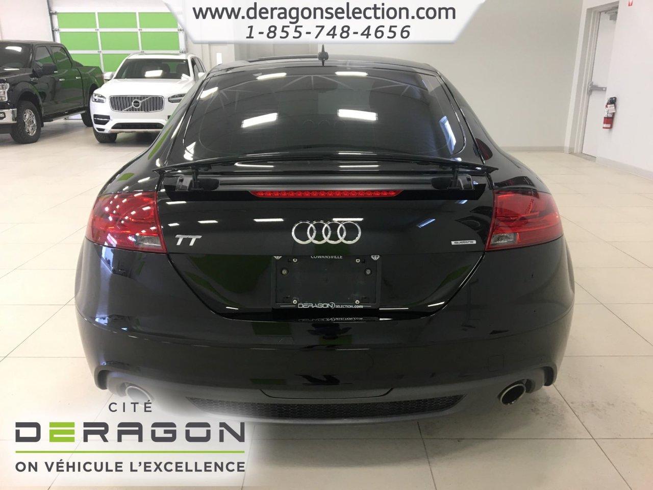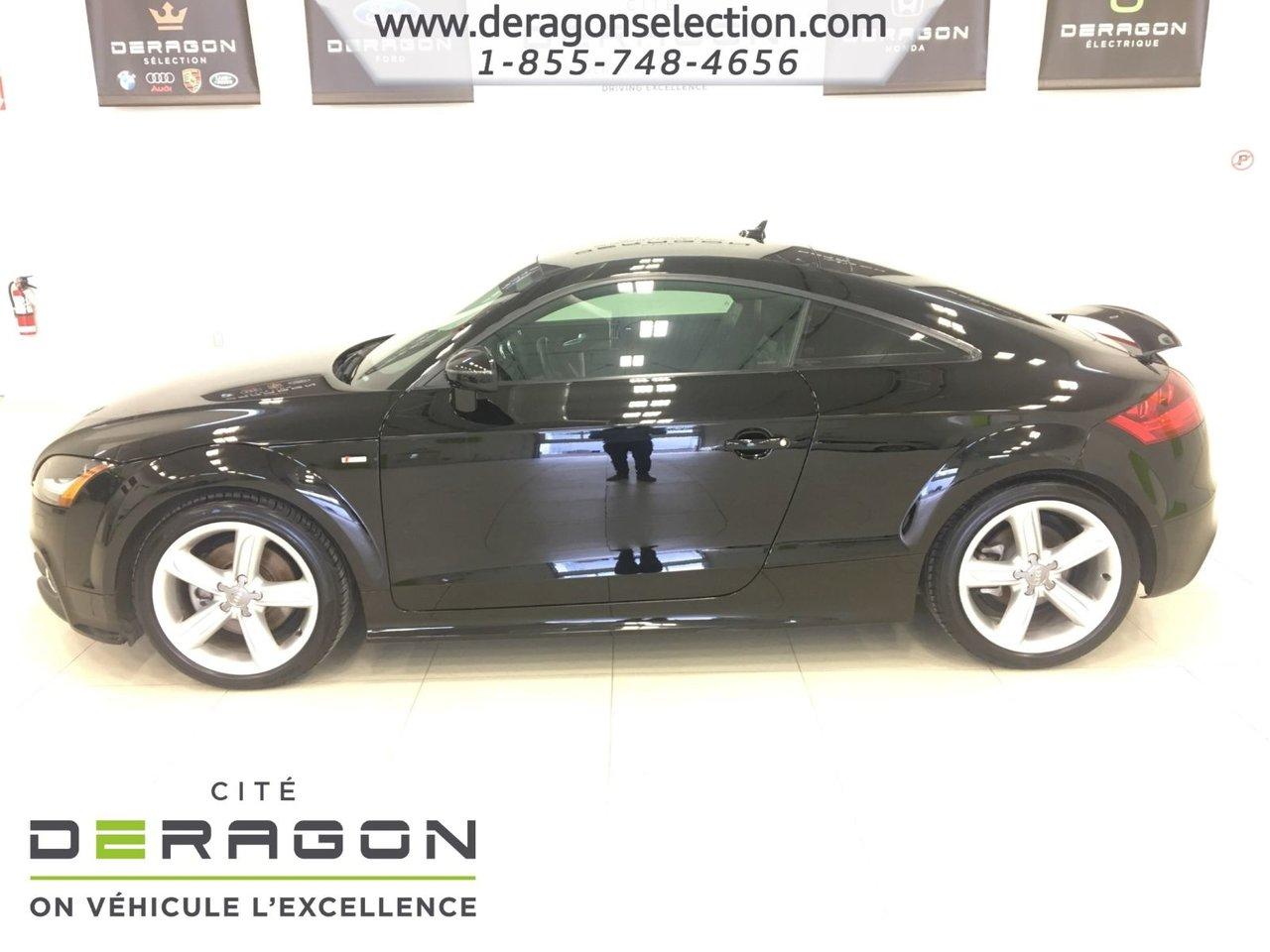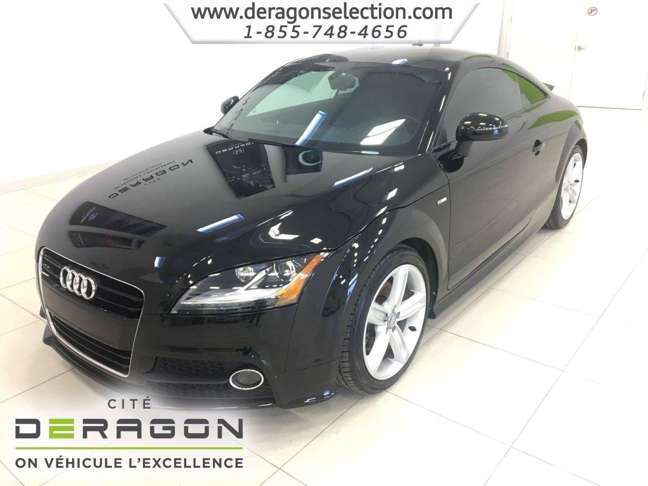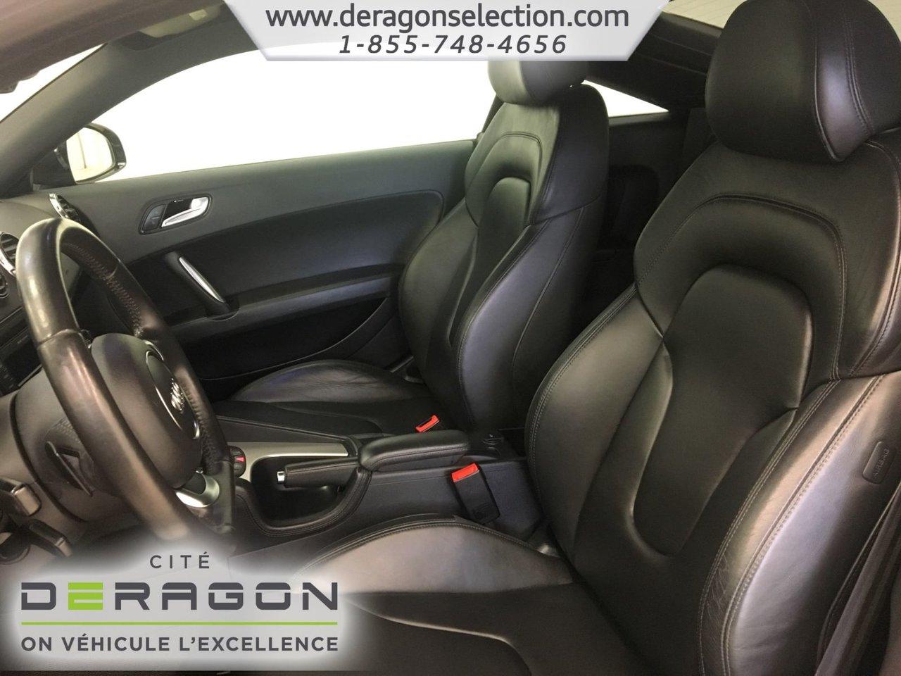 Audi TT 2.0T COUPE S LINE + QUATTRO + CUIR 2.0T COUPE S LINE + QUATTRO + CUIR 2012Régulateur de vitesse, Essuie-glaces intermittents, Freins ABS, Contrôle de stabilité, Coussin gonflable conducteur, Coussins gonflables latéraux, Lecteur CD, Lecteur MP3, Portes électriques, Sièges électriques, Tachymètre, Vitres électriques, Air climatisé, Intérieur en cuir, Climatisation deux zones, Commandes audio au volant, Sièges arrières rabattables, Sièges chauffants, Volant ajustable, Aileron, Tapis protecteurs, Ordinateur de bord, Tout équipé, Radio AM/FM, Phares automatiques, Rétroviseur électrique, Direction assistée, Télédéverrouillage, Rétroviseurs chauffants, Siège à réglage électrique, Système d\'alarme, Freins à disque, Sièges chauffants - Avant, Rétroviseurs électriques, Jantes en alliage, Antipatinage, Phares antibrouillards, Système de surveillance de la pression des pneus, Sièges baquets, Climatiseur automatique, Rétroviseur à atténuation automatique, Aluminium, Climatisation