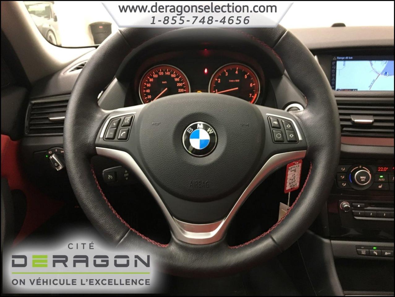 BMW X1 28i xDrive SPORTLINE + NAV + TOIT + CUIR ROUGE 28i xDrive SPORTLINE + NAV + TOIT + CUIR ROUGE 2014Régulateur de vitesse, Toit ouvrant, Essuie-glaces intermittents, Essuie-glace arrière, Anti-démarreur, Freins ABS, Contrôle de stabilité, Coussin gonflable conducteur, Coussins gonflables latéraux, Lecteur CD, Chargeur de CD, Lecteur MP3, Portes électriques, Sièges électriques, Tachymètre, Vitres électriques, Air climatisé, Intérieur en cuir, Climatisation deux zones, Commandes audio au volant, Sièges arrières rabattables, Sièges chauffants, Volant ajustable, Tapis protecteurs, Phares haute intensité, Ordinateur de bord, Tout équipé, Radio AM/FM, Volant gainé de cuir, Phares automatiques, Rétroviseur électrique, Direction assistée, Télédéverrouillage, Rétroviseurs chauffants, Siège à réglage électrique, Système d\'alarme, Coussins gonflables arrière pour la tête, Démarrage sans clé, Freins à disque, Sièges chauffants - Avant, Rétroviseurs électriques, Jantes en alliage, Antipatinage, Phares antibrouillards, Verrous de sécurité pour enfants, Système de surveillance de la pression des pneus, Sièges baquets, Prise Auxiliaire, Technologie Bluetooth intégrée, Port USB, Climatiseur automatique, Aide au stationnement (capteurs), Aluminium, Climatisation