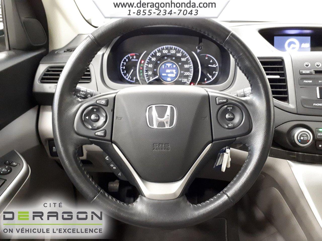 Honda CR-V EXL+INT?RIEUR EN CUIR +SI?GES CHAUFFANTS+BLUETOOTH EX-L+INT?RIEUR EN CUIR +SI?GES CHAUFFANTS+BLUETOOTH+R?GULATEUR DE VITESSE+TOIT OUVRANT+AIR CLIMATIS? 2014Régulateur de vitesse, Toit ouvrant, Essuie-glaces intermittents, Essuie-glace arrière, Anti-démarreur, Freins ABS, Contrôle de stabilité, Coussin gonflable conducteur, Coussins gonflables latéraux, Lecteur CD, Lecteur MP3, Sièges électriques, Tachymètre, Vitres électriques, Air climatisé, Intérieur en cuir, Climatisation deux zones, Commandes audio au volant, Sièges arrières rabattables, Sièges chauffants, Volant ajustable, Moonroof, Tapis protecteurs, Tout équipé, Caméra de recul, Radio AM/FM, Volant gainé de cuir, Phares automatiques, Rétroviseur électrique, Direction assistée, Télédéverrouillage, Rétroviseurs chauffants, Siège à réglage électrique, Coussins gonflables arrière pour la tête, Siège conducteur - soutien lombaire, Freins à disque, Sièges chauffants - Avant, Rétroviseurs électriques, Jantes en alliage, Antipatinage, Phares antibrouillards, Verrous de sécurité pour enfants, Système de surveillance de la pression des pneus, Sièges baquets, Prise Auxiliaire, Technologie Bluetooth intégrée, Port USB, Cache bagages, Aluminium, Climatisation