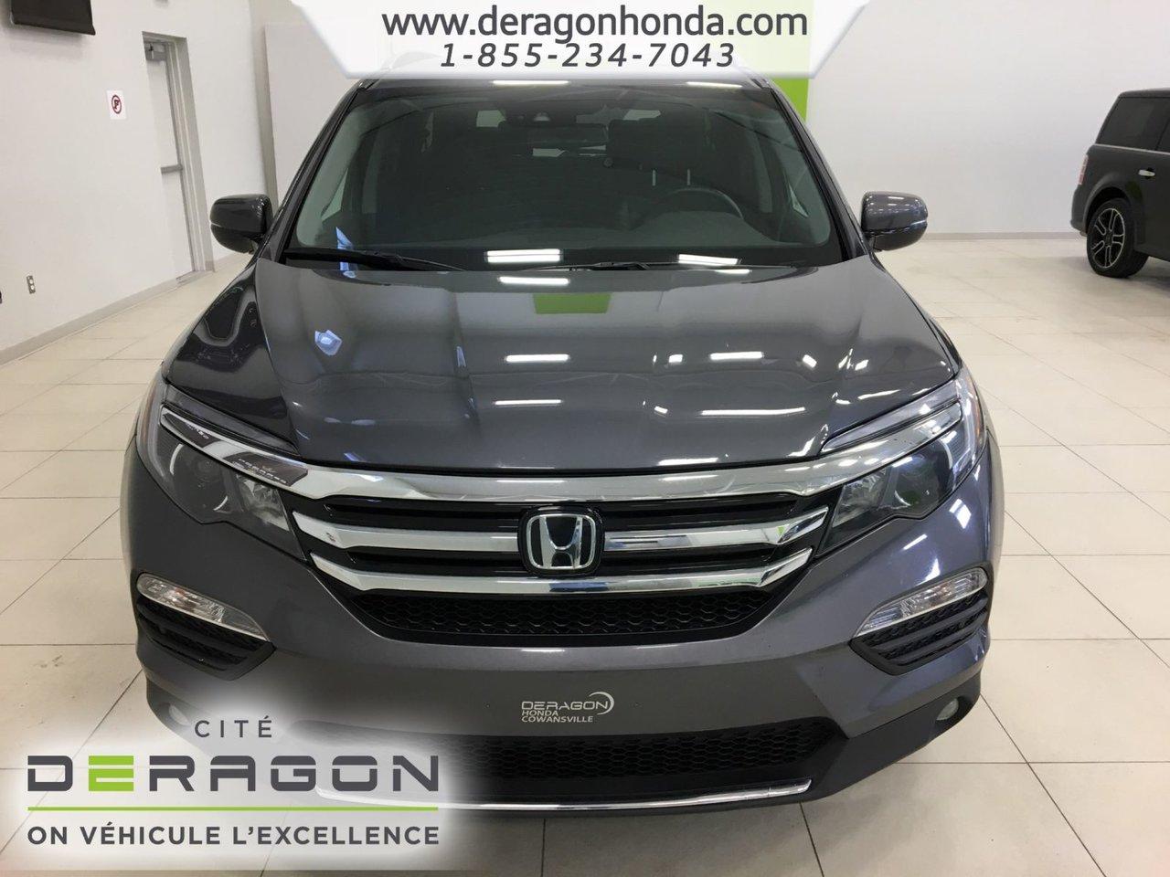 Honda Pilot TOURING+AWD+SYST?ME DIVERTISSEMENT+SI?GES VENTIL?S TOURING+AWD+SYST?ME DIVERSTISSEMENT+SI?GES VENTIL?S+ATTELAGE REMORQUE+CAM?RA DE RECUL+TOIT OUVRANT 2016Régulateur de vitesse, Toit ouvrant, Essuie-glaces intermittents, Essuie-glace arrière, Anti-démarreur, Freins ABS, Contrôle de stabilité, Coussin gonflable conducteur, Coussins gonflables latéraux, Démarreur à distance, Lecteur CD, Lecteur DVD, Lecteur MP3, Portes électriques, Sièges électriques, Tachymètre, Vitres électriques, Air climatisé, Intérieur en cuir, Climatisation deux zones, Commandes audio au volant, Sièges chauffants, Siège mémoire, Volant ajustable, Moonroof, Tapis protecteurs, Vitres teintées, Attelage remorque, Phares haute intensité, Ordinateur de bord, Tout équipé, Caméra de recul, Radio AM/FM, Rétroviseurs, Volant gainé de cuir, Phares automatiques, Rétroviseur électrique, Commande audio arrière, Sièges arrières chauffants, Direction assistée, Télédéverrouillage, Sièges de troisième rangée, Rétroviseurs chauffants, Siège à réglage électrique, Coussins gonflables arrière pour la tête, Siège conducteur - soutien lombaire, Siège refroidissant, Essuie-glace détecteur de pluie, Démarrage sans clé, Freins à disque, Sièges chauffants - Avant, Rétroviseurs électriques, Jantes en alliage, Antipatinage, Phares antibrouillards, Verrous de sécurité pour enfants, Système de surveillance de la pression des pneus, Sièges baquets, Prise Auxiliaire, Système de divertissement vidéo, Technologie Bluetooth intégrée, Port USB, Climatisation arrière, Rétroviseur à atténuation automatique, Surveillance de l'angle mort, Climatisation, Volant chauffant