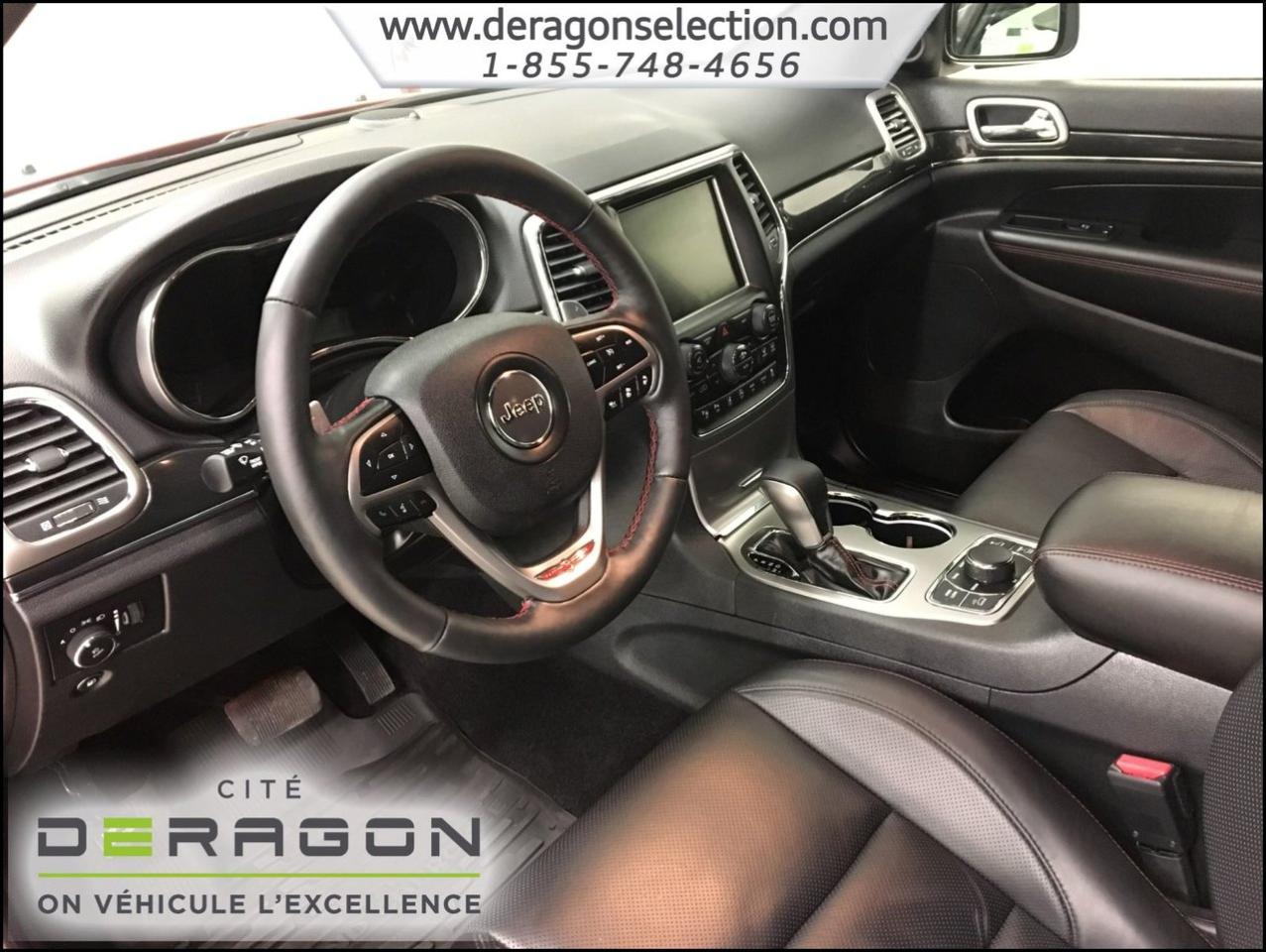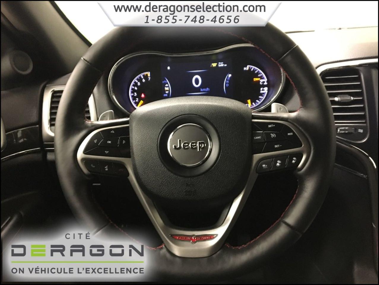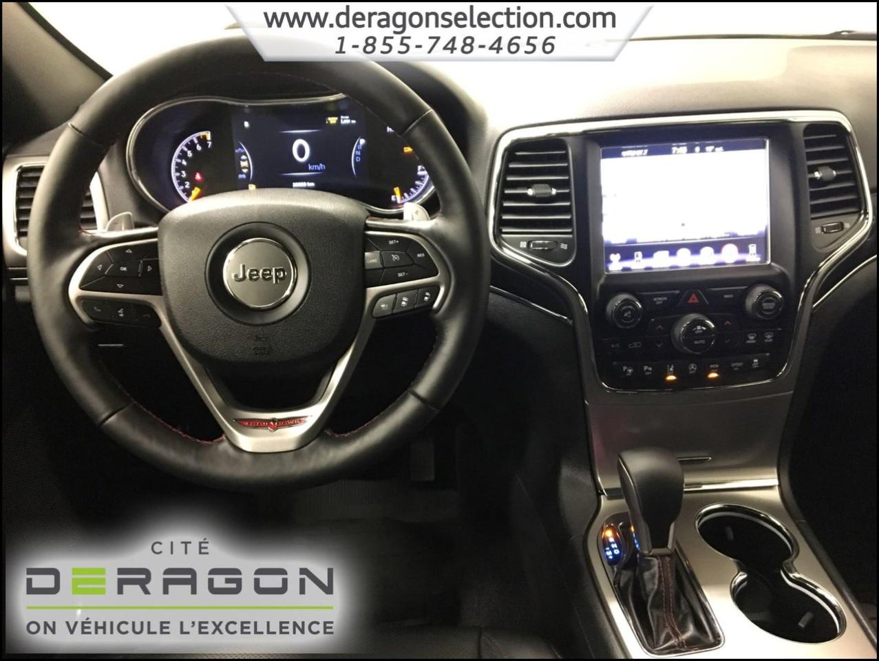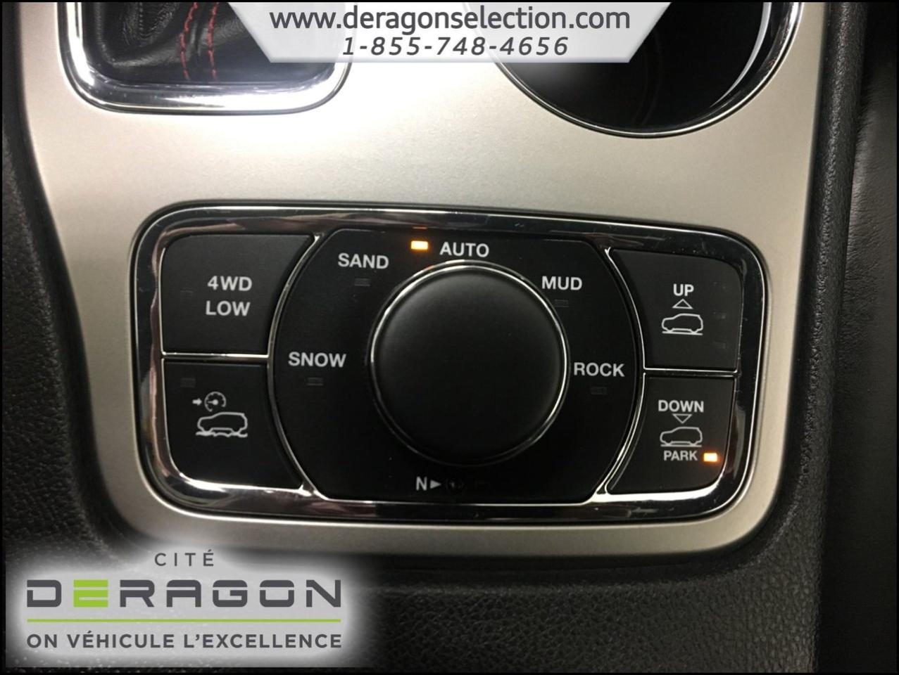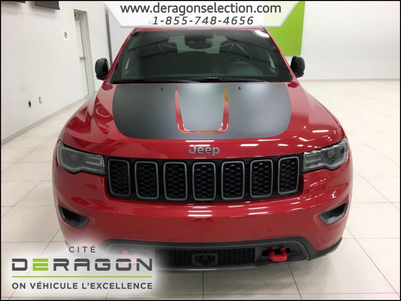 Jeep Grand Cherokee TRAILHAWK + LUXURY GROUP + ACTIVE GROUP TRAILHAWK + LUXURY GROUP + ACTIVE GROUP 2017Régulateur de vitesse, Toit ouvrant, Essuie-glaces intermittents, Essuie-glace arrière, Anti-démarreur, Freins ABS, Contrôle de stabilité, Coussin gonflable conducteur, Coussins gonflables latéraux, Démarreur à distance, Lecteur MP3, Portes électriques, Sièges électriques, Tachymètre, Vitres électriques, Air climatisé, Intérieur en cuir, Climatisation deux zones, Commandes audio au volant, Sièges arrières rabattables, Sièges chauffants, Siège mémoire, Volant ajustable, Tapis protecteurs, Attelage remorque, Phares haute intensité, Ordinateur de bord, Tout équipé, Caméra de recul, Radio AM/FM, Rétroviseurs, Volant gainé de cuir, Phares automatiques, Rétroviseur électrique, Sièges arrières chauffants, Direction assistée, Télédéverrouillage, Rétroviseurs chauffants, Siège à réglage électrique, Système d\'alarme, Coussins gonflables arrière pour la tête, Siège conducteur - soutien lombaire, Siège passager - soutien lombaire, Siège refroidissant, Démarrage sans clé, Freins à disque, Sièges chauffants - Avant, Rétroviseurs électriques, Jantes en alliage, Antipatinage, Phares antibrouillards, Verrous de sécurité pour enfants, Système de surveillance de la pression des pneus, Sièges baquets, Technologie Bluetooth intégrée, Climatiseur automatique, Aide au stationnement (capteurs), Coussin gonflable - Commutateur de mise en/hors fo, Roue de secours - Temporaire, Rétroviseur à atténuation automatique, Aluminium, Climatisation, Volant chauffant