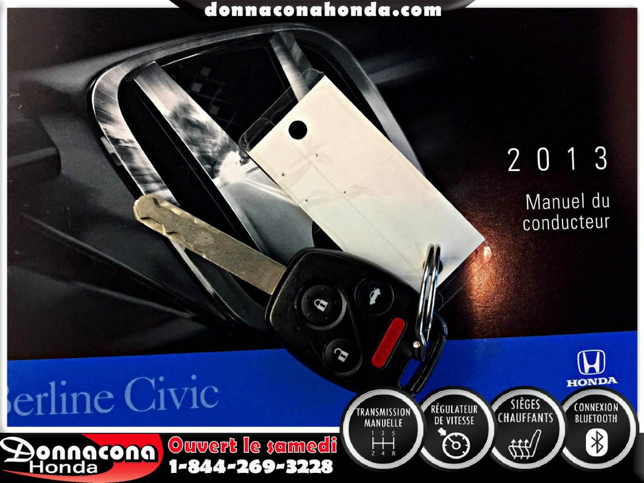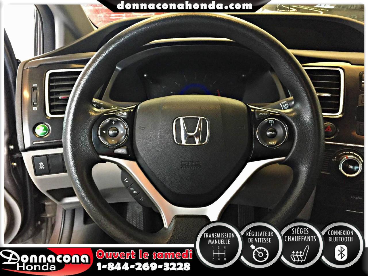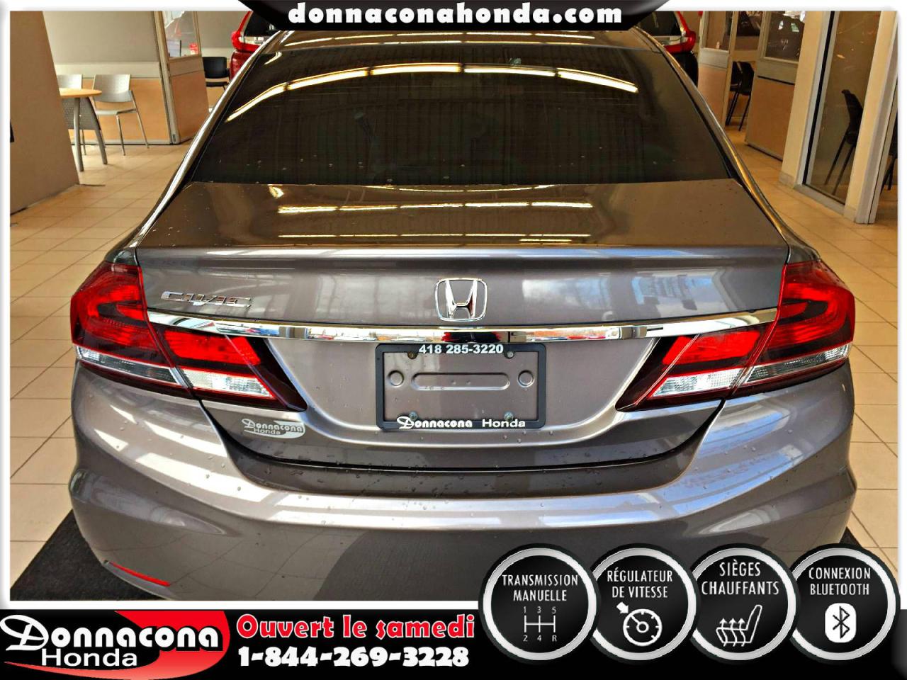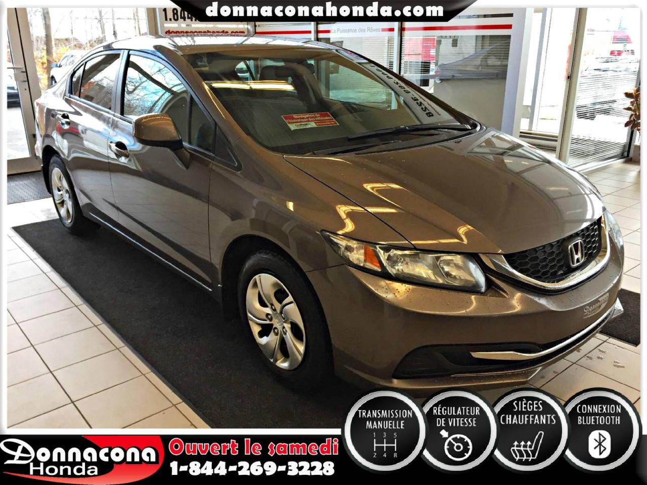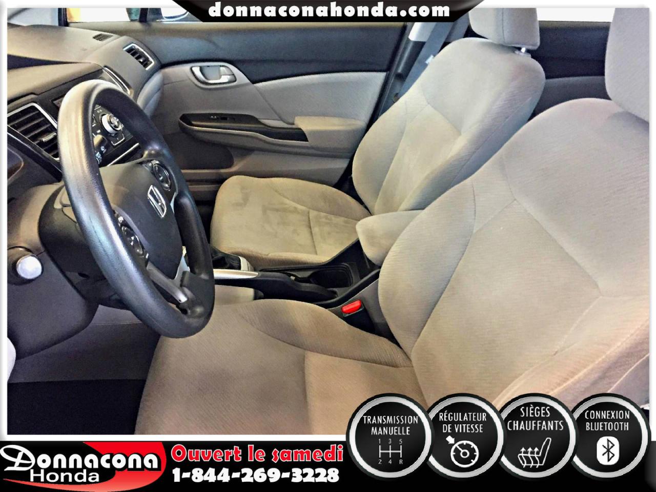DONNACONA HONDA, HONDA CIVIC LX 2013, TRANSMISSION MANUELLE, RÉGULATEUR DE VITESSE, CONNEXION BLUETHOOT, AIR CLIMATISÉ, SIÈGES CHAUFFANTS, VITRES TEINTÉES, ENJOLIVEURS DE ROUES ET BIEN PLUS ENCORE.