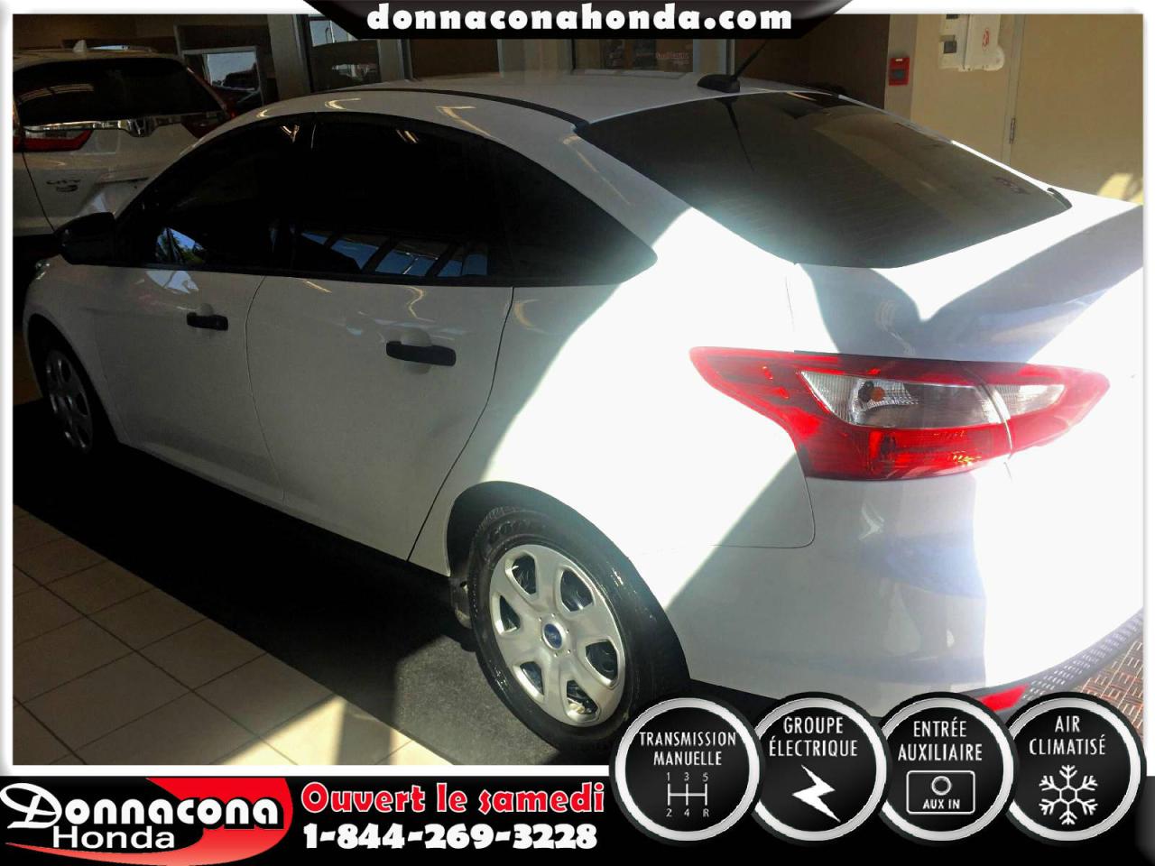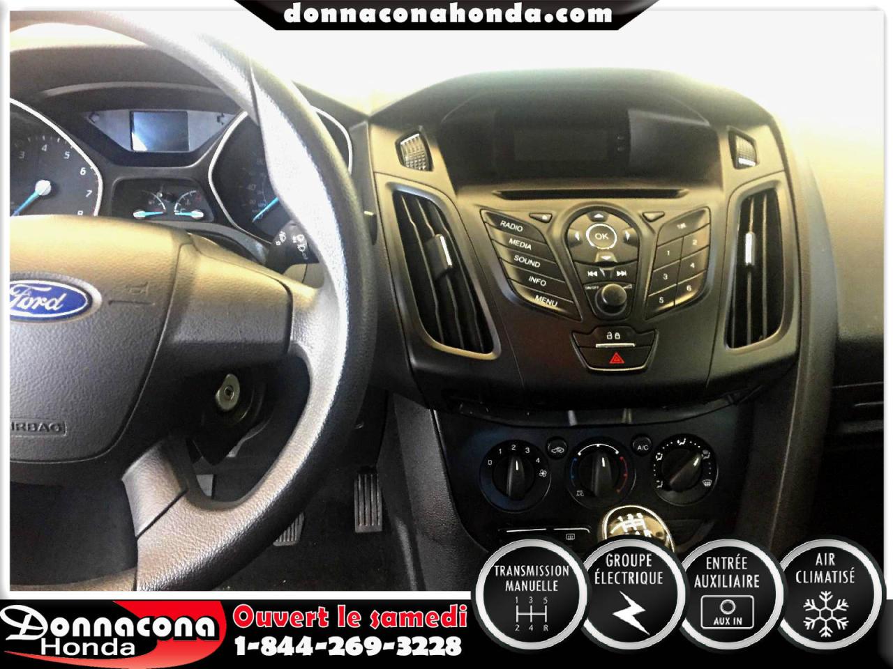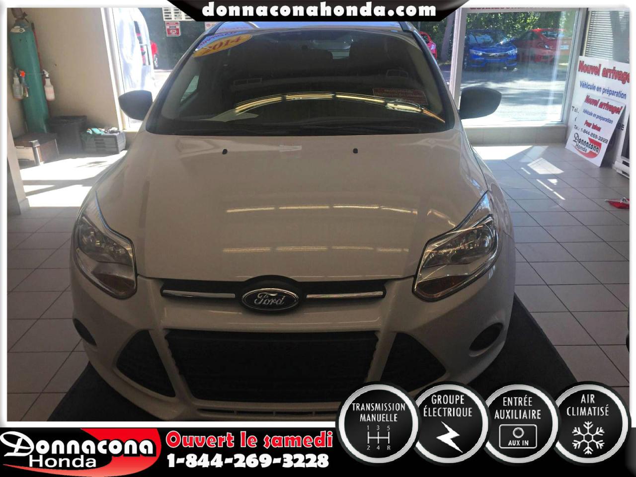 DONNACONA HONDA, FORD FOCUS S 2014, TRANSMISSION MANUELLE, GROUPE ÉLECTRIQUE, TÉLÉDÉVÉREOUILLAGE, ENJOLIVEURS DE ROUES, AIR CLIMATISÉ, VITRES TEINTÉ, LECTEUR MP3 ET BIEN PLUS ENCORE.
