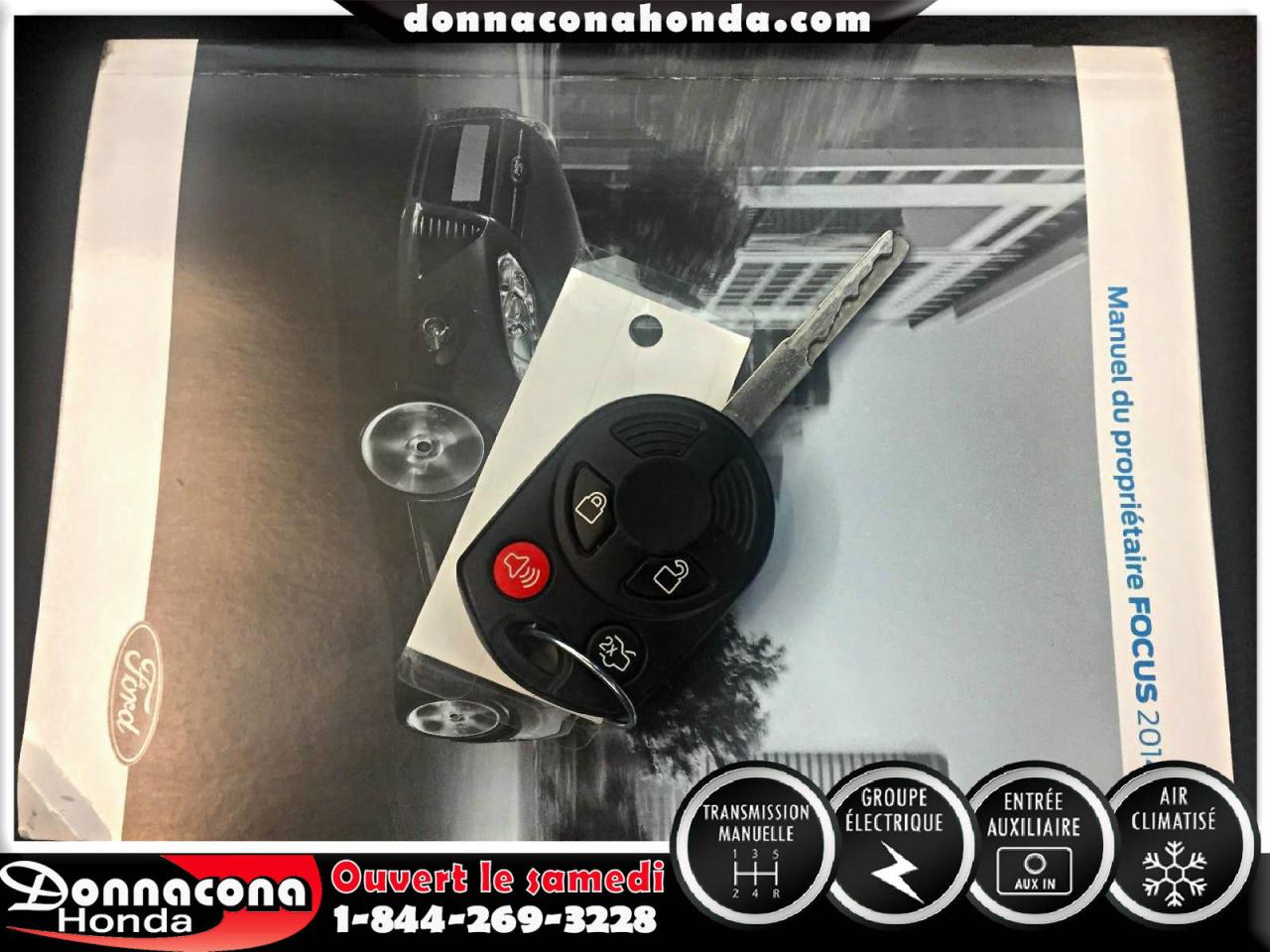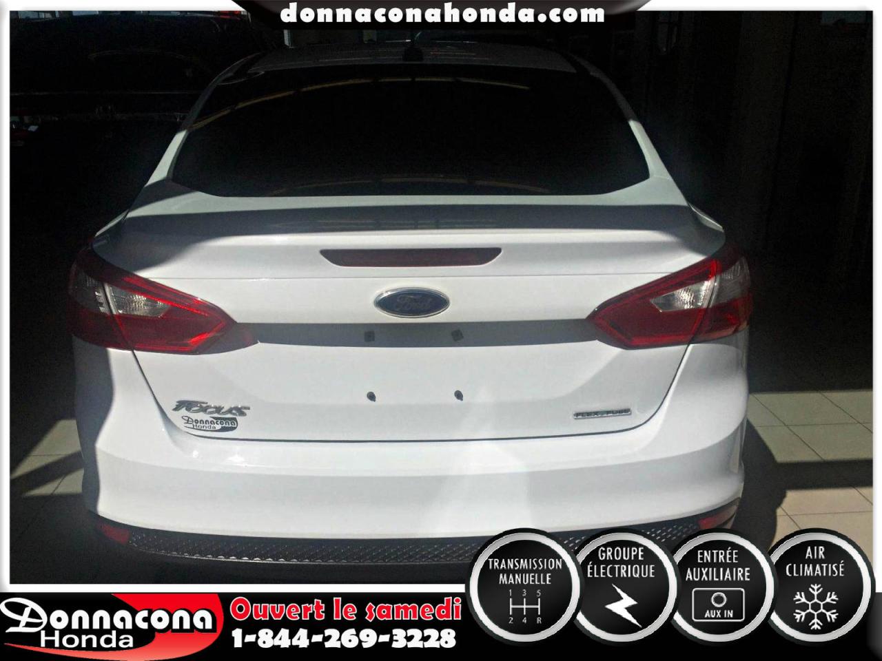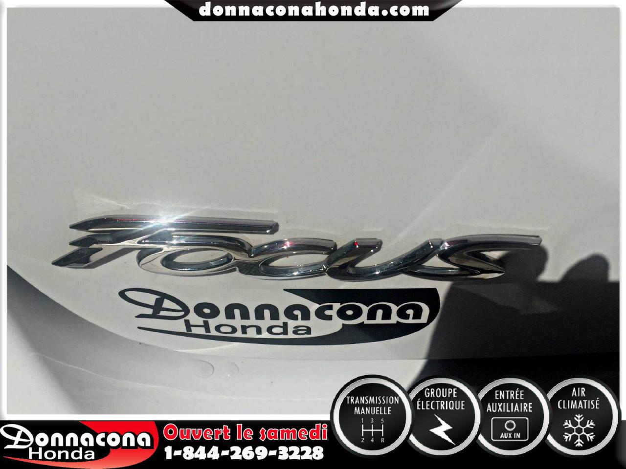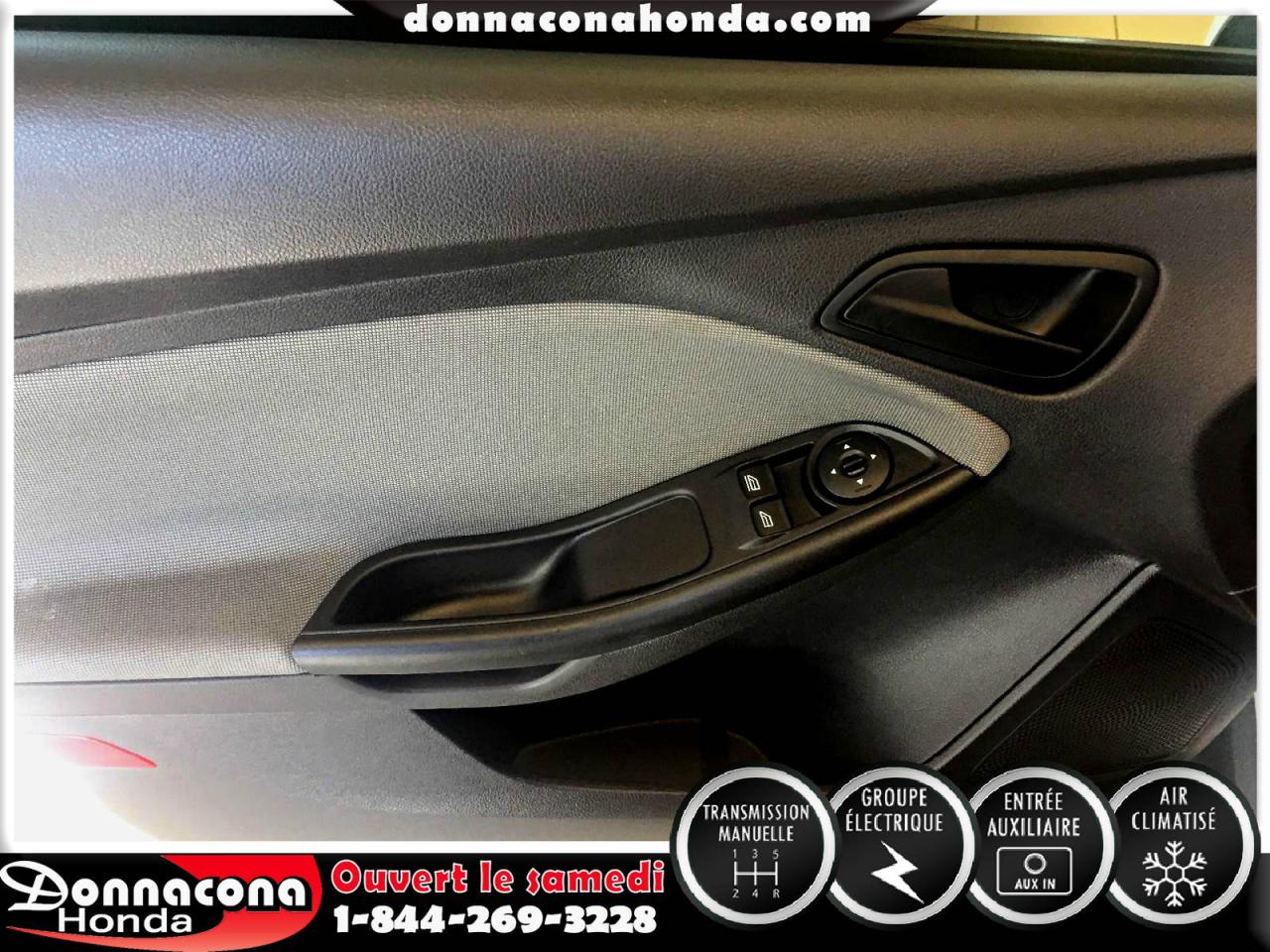 DONNACONA HONDA, FORD FOCUS S 2014, TRANSMISSION MANUELLE, GROUPE ÉLECTRIQUE, TÉLÉDÉVÉREOUILLAGE, ENJOLIVEURS DE ROUES, AIR CLIMATISÉ, VITRES TEINTÉ, LECTEUR MP3 ET BIEN PLUS ENCORE.