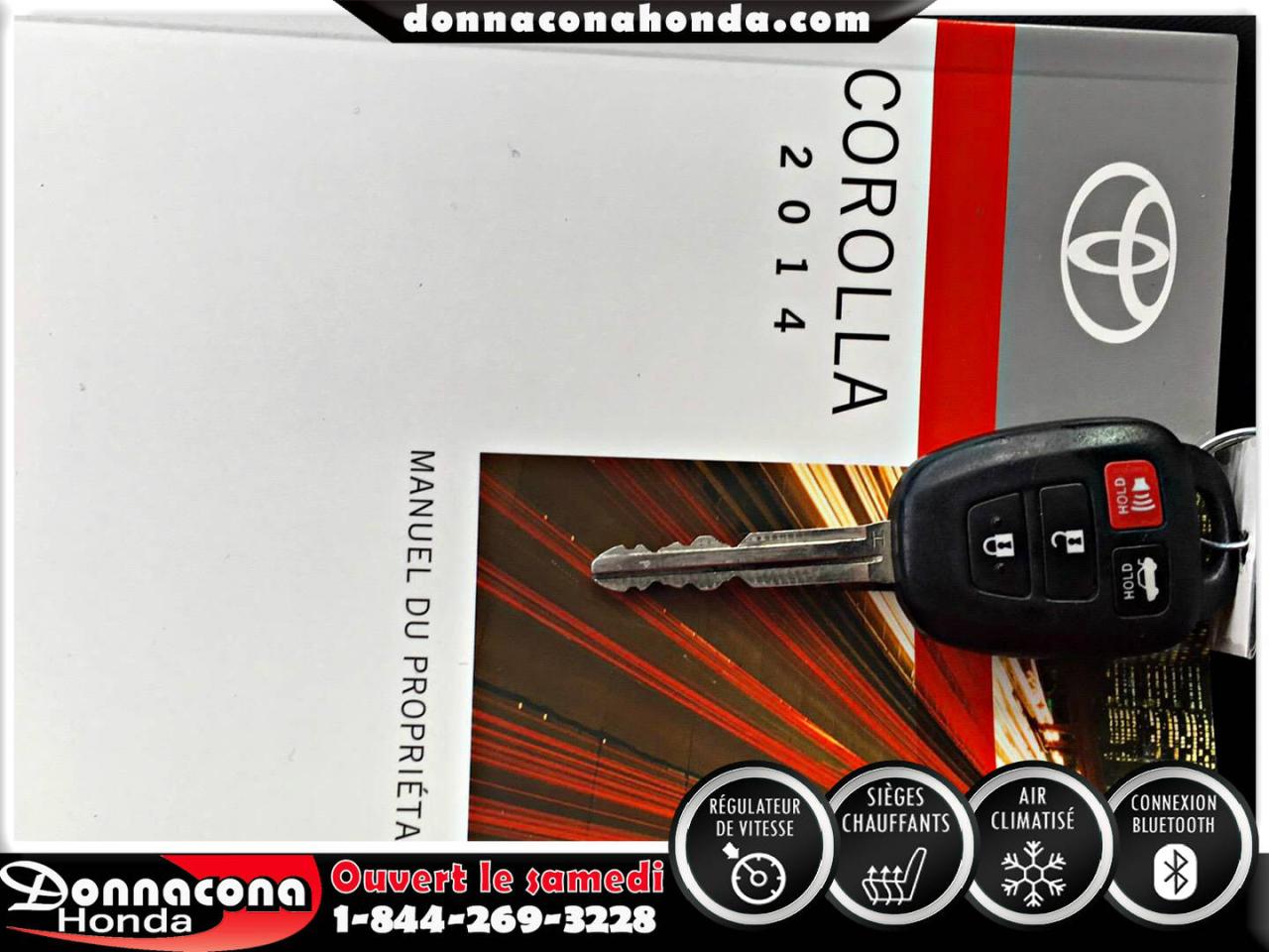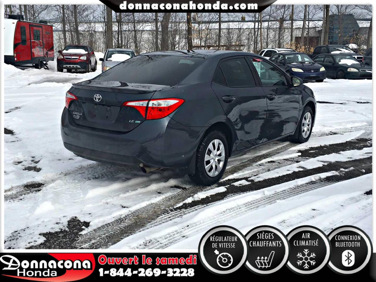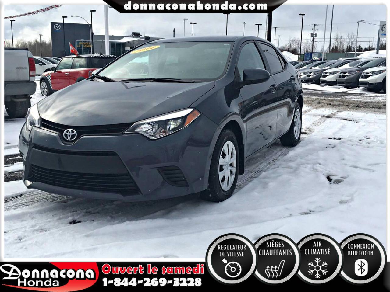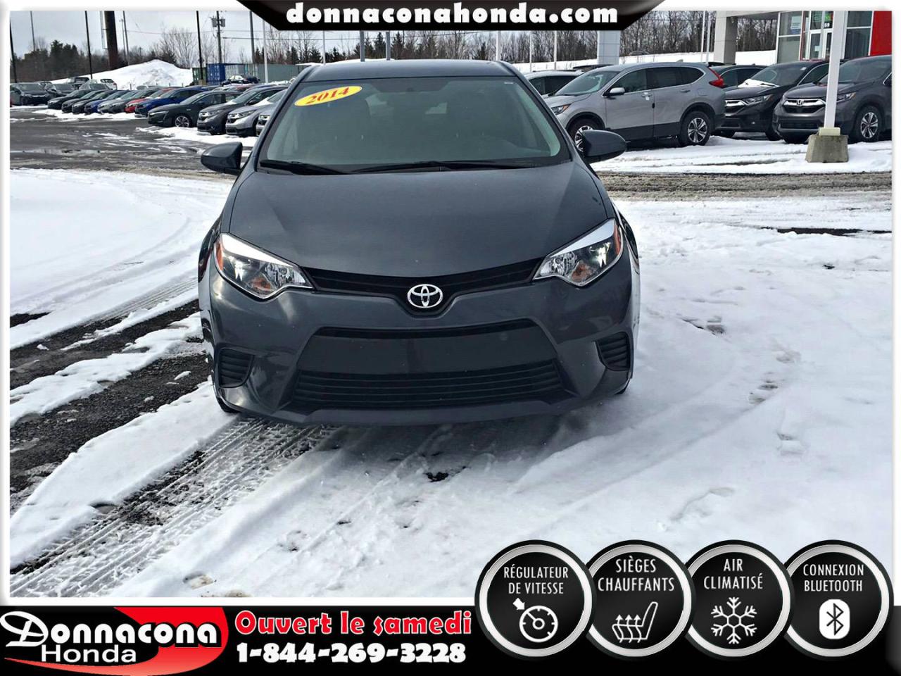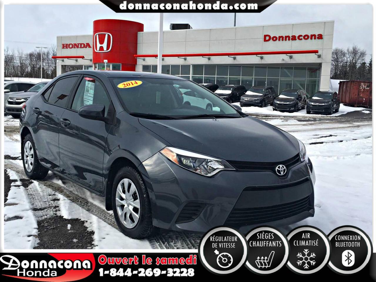 DONNACONA HONDA, TOYOTA COROLLA LE ECO 2014, RÉGULATEUR DE VITESSE, CONNEXION BLUETHOOT, SIÈGES CHAUFFANTS, CAMÉRA DE RECUL, MIROIRS CHAUFFANTS, ECRAN TACTILE, VITRES TEINTÉES, ENJOLIVEURS DE ROUES ET BIEN PLUS ENCORE