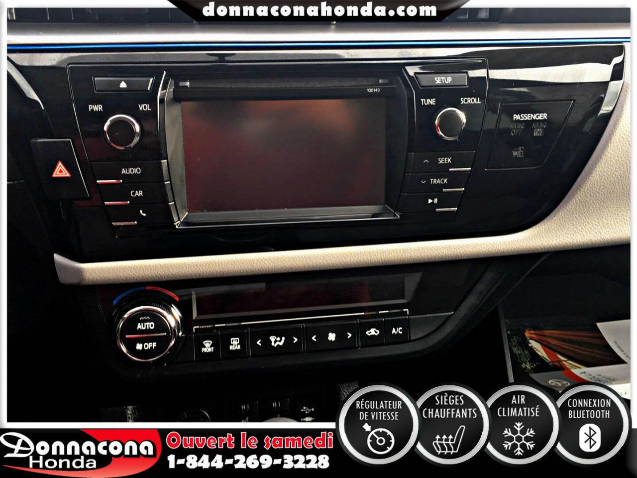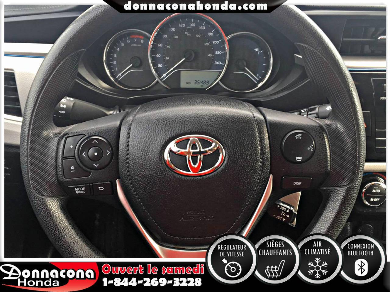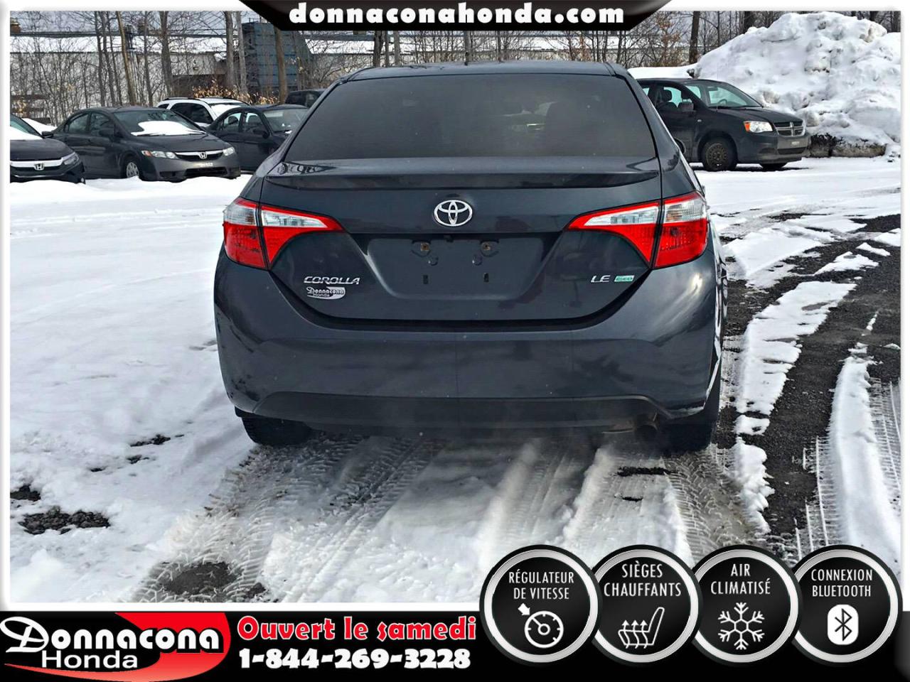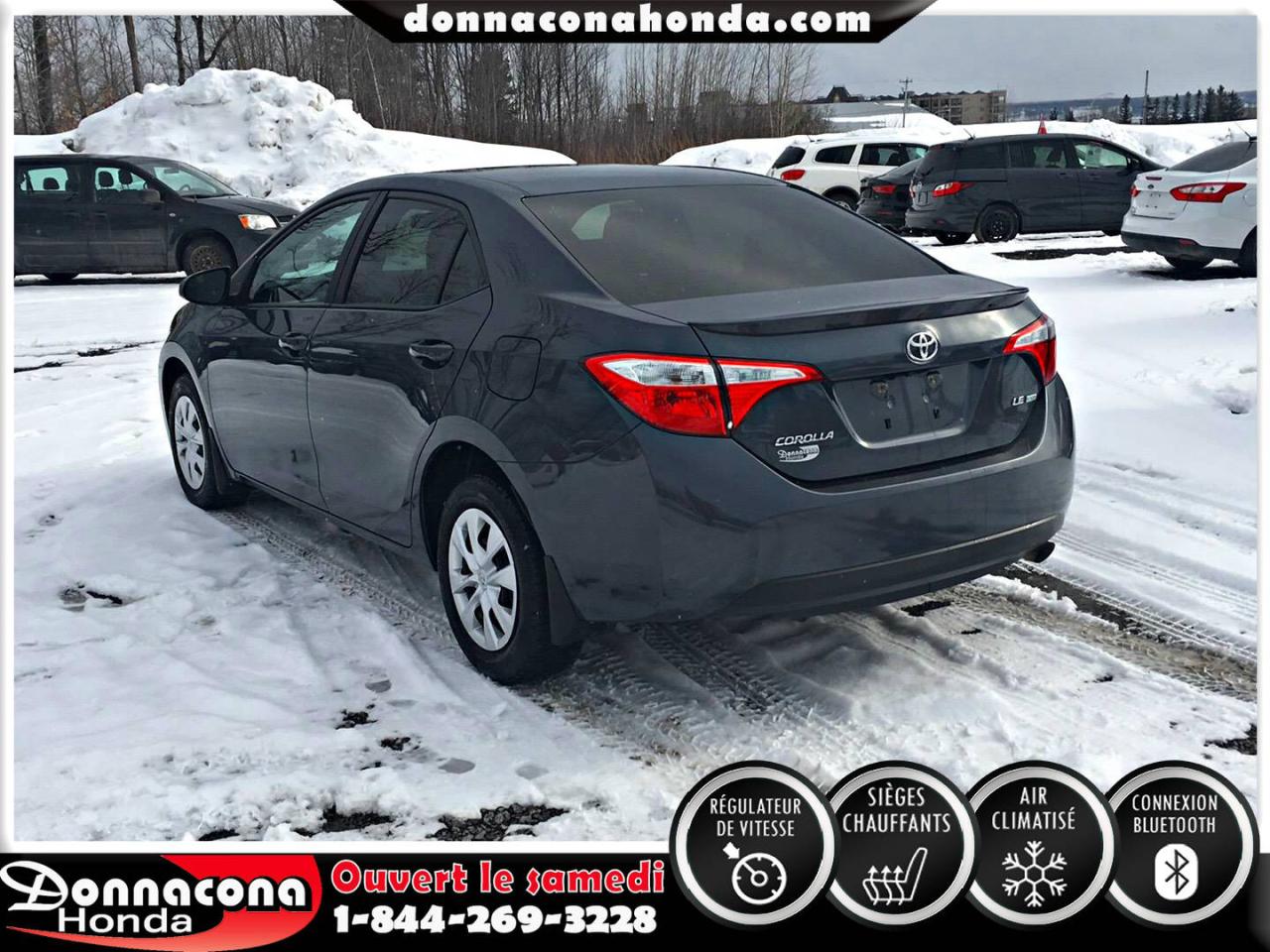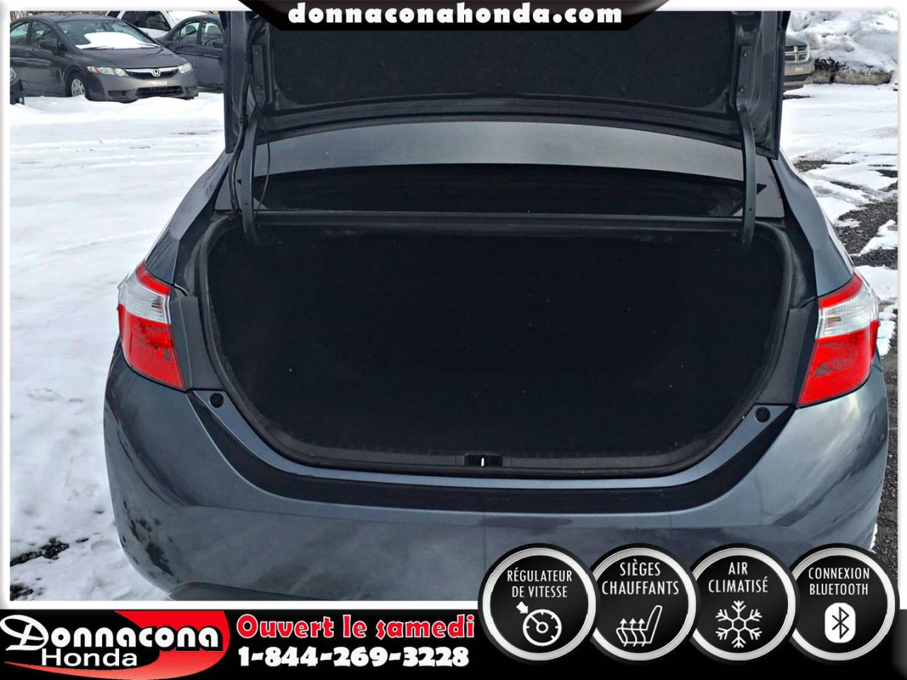DONNACONA HONDA, TOYOTA COROLLA LE ECO 2014, RÉGULATEUR DE VITESSE, CONNEXION BLUETHOOT, SIÈGES CHAUFFANTS, CAMÉRA DE RECUL, MIROIRS CHAUFFANTS, ECRAN TACTILE, VITRES TEINTÉES, ENJOLIVEURS DE ROUES ET BIEN PLUS ENCORE