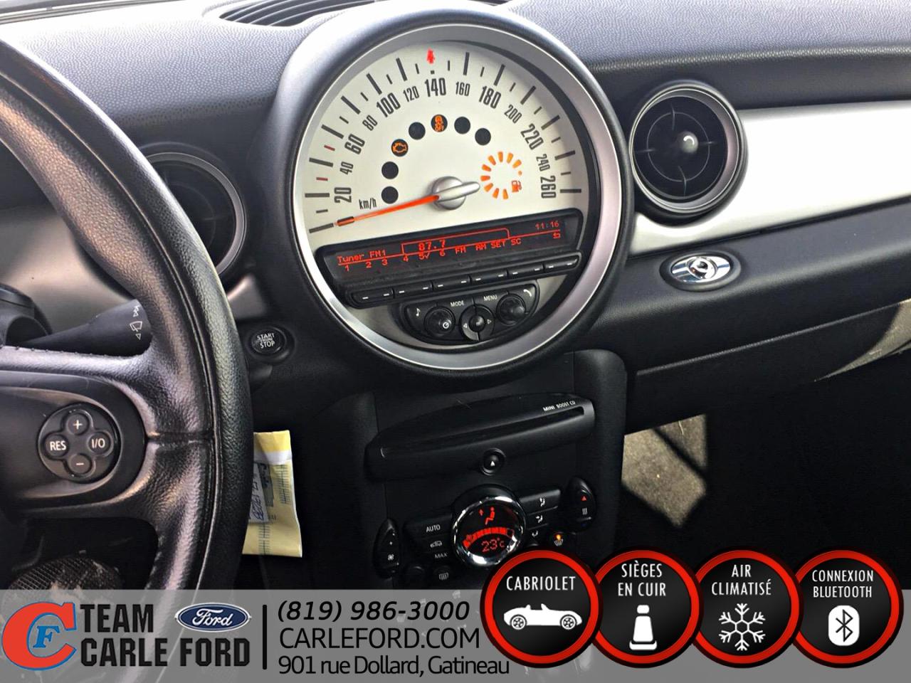 Air climatisé, vitres électriques, portes électriques, miroirs électriques, sièges chauffant, radio/cd, régulateur de vitesse, intérieur en cuir, bluetooth, convertible