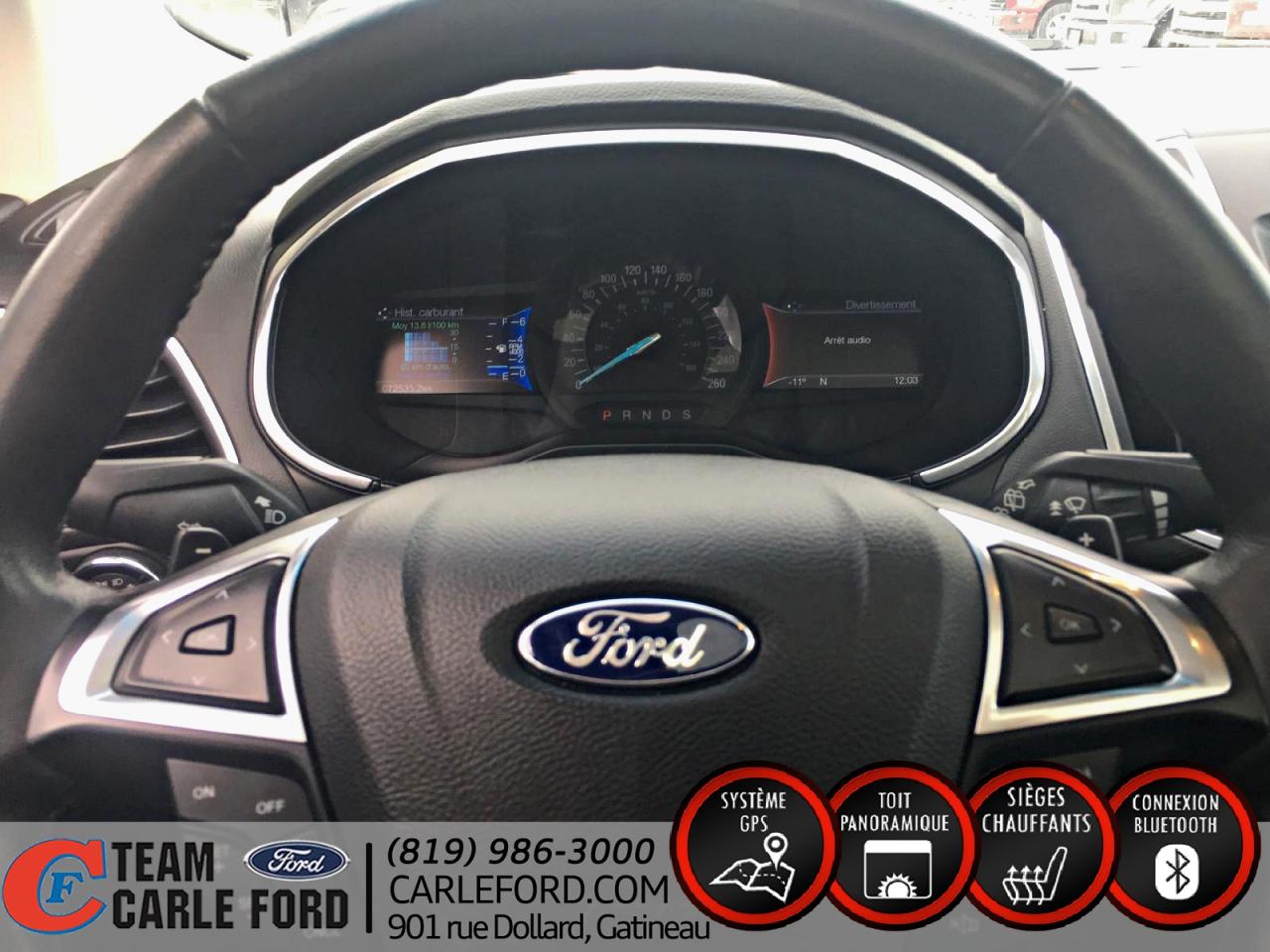 AIR CLIMATISÉ..PORTES ÉLECTRIQUES..VITRES ÉLECTRIQUES..SIÈGES ÉLECTRIQUES..MIROIRS ÉLECTRIQUES..SIÈGES CHAUFFANT..MY TOUCH FORD..RADIO/CD..RÉGULATEUR DE VITESSE..INTÉRIEUR EN CUIR..TOIT PANORAMIQUE..SYSTÈME DE NAVIGATION..CAMÉRA DE RECUL..SONAR DE RECUL..BLUETOOTH..PKG 400A