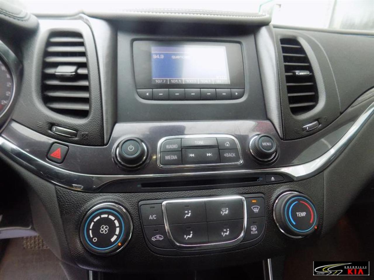 Chevrolet Impala 1LS 2014\n\nRégulateur de vitesse, Servo-direction, Essuie-glaces intermittents, Freins ABS, Contrôle de stabilité, Serrure à sécurité pour enfants, Lecteur CD, Miroirs chauffants, Miroirs électriques, Portes électriques, Sièges électriques, Vitres électriques, Air climatisé, Volant ajustable, Radio satellite, Radio AM/FM, Phares automatiques, Télédéverrouillage, Système d'alarme, Miroir vanité conducteur illuminé, Sièges tissu, Antivol, Antipatinage, Sièges baquets, Miroir vanité passager illuminé\n\n