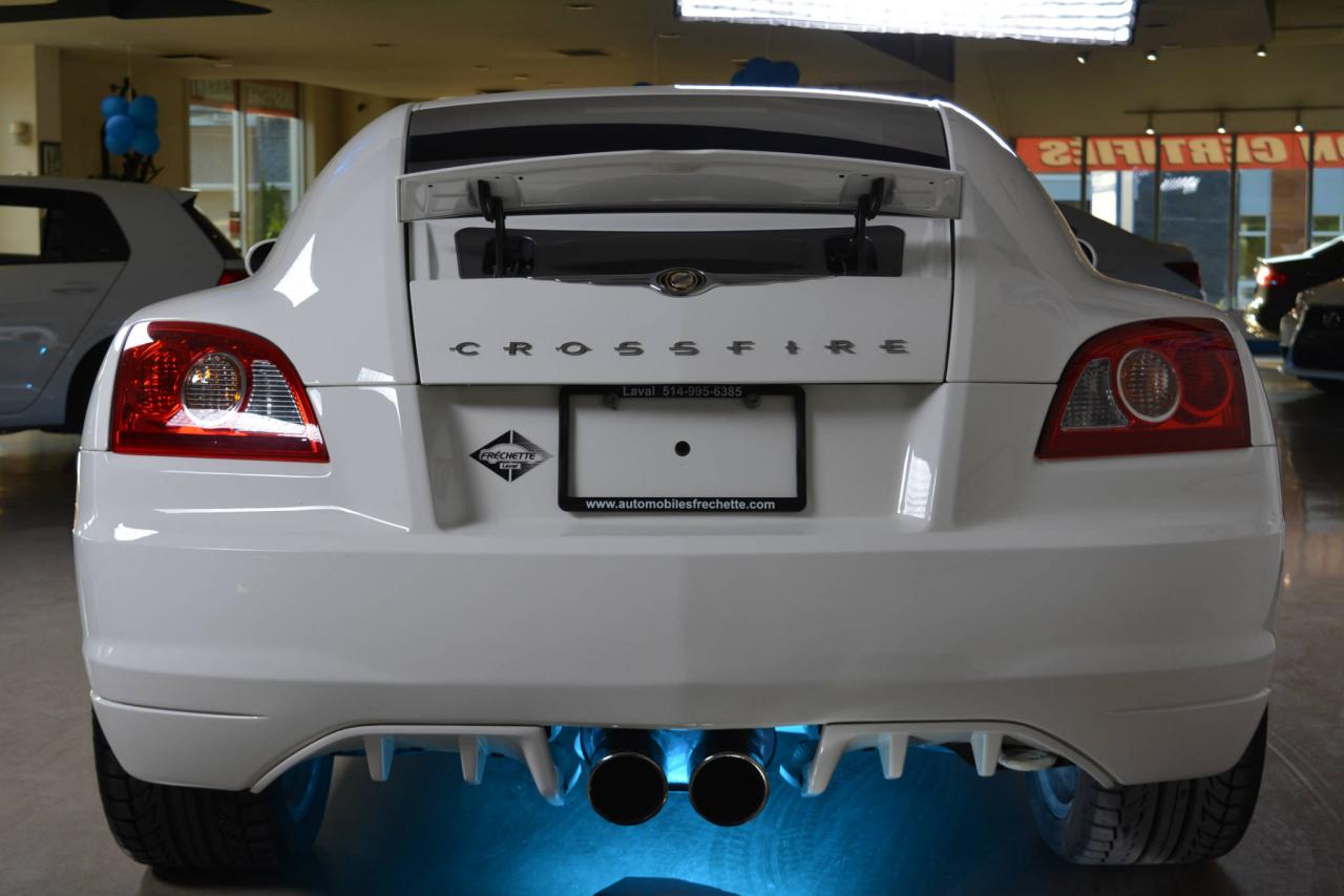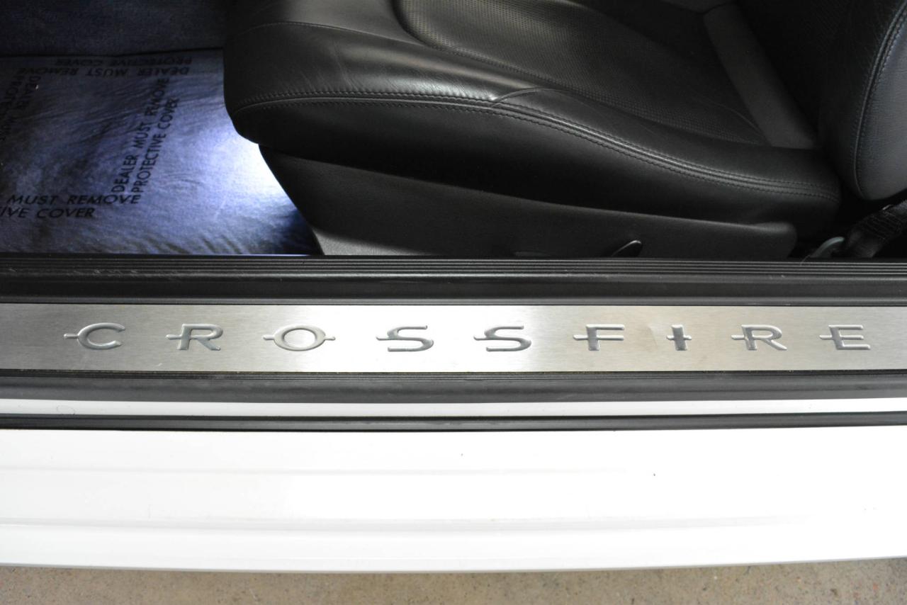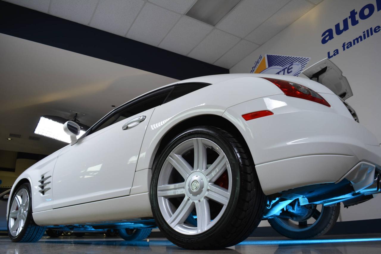 * Inspection complète et esthétique inclus * Crossfire Limited coupé 2 portes * 2 places * Transmission manuelle 6 vitesses * Propulsion arrière * Moteur V6 3.2L * Roues en alliages 18'' avant et 19'' arrière * #Cuir noir# * Sièges électriques chauffants * Rétroviseurs chauffants * Régulateur de vitesse * Climatisation 2 zones * Lecteur CD * Provient d'un client d'Automobiles Fréchette