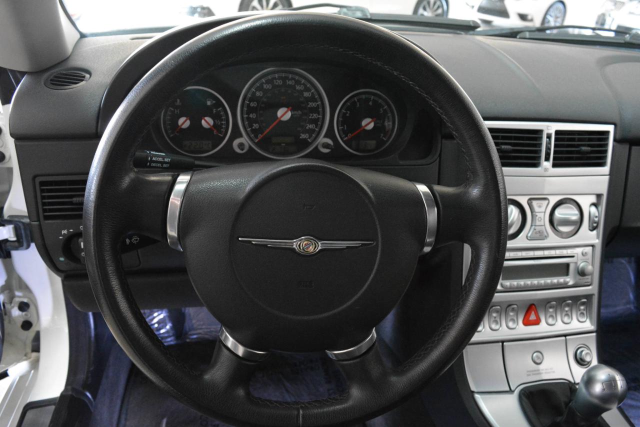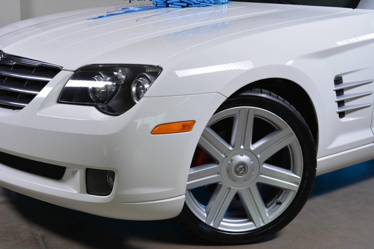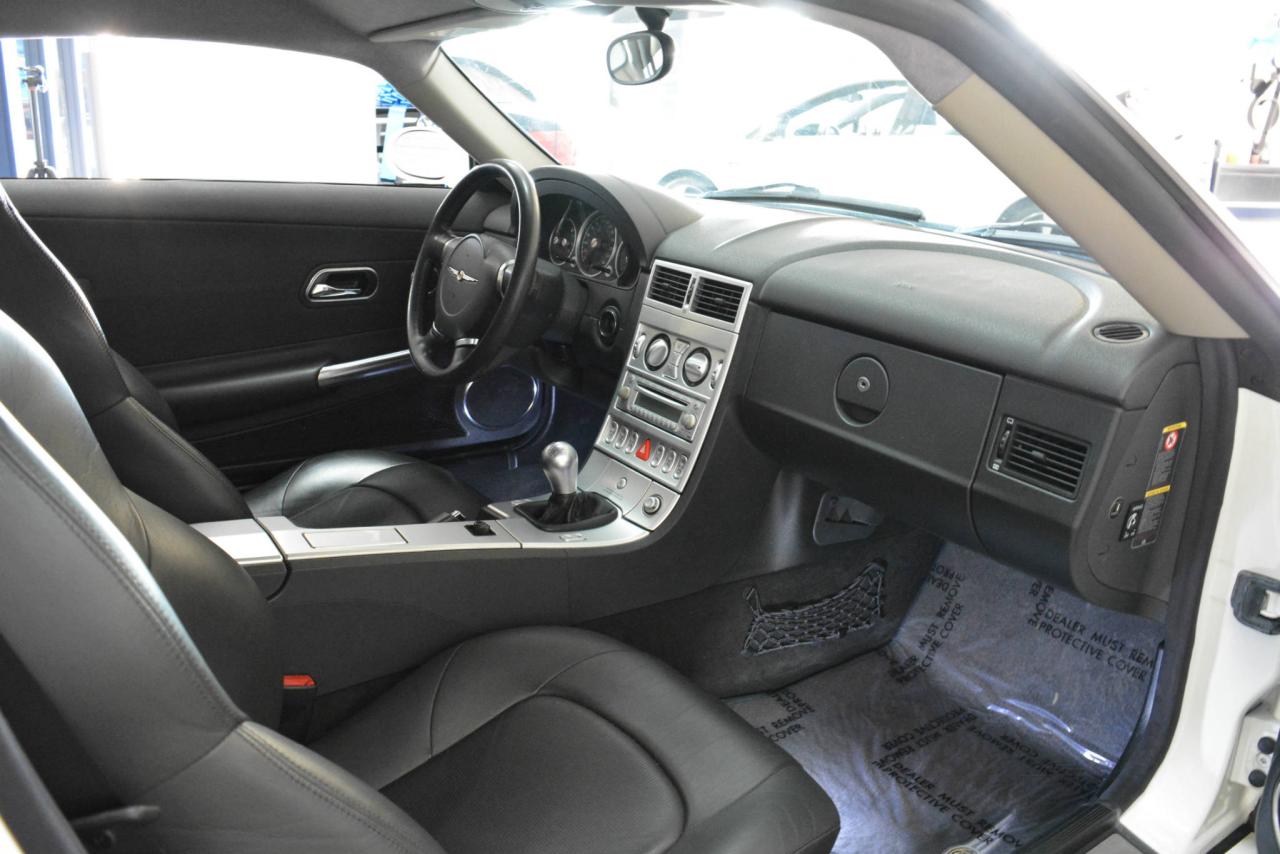 * Inspection complète et esthétique inclus * Crossfire Limited coupé 2 portes * 2 places * Transmission manuelle 6 vitesses * Propulsion arrière * Moteur V6 3.2L * Roues en alliages 18'' avant et 19'' arrière * #Cuir noir# * Sièges électriques chauffants * Rétroviseurs chauffants * Régulateur de vitesse * Climatisation 2 zones * Lecteur CD * Provient d'un client d'Automobiles Fréchette