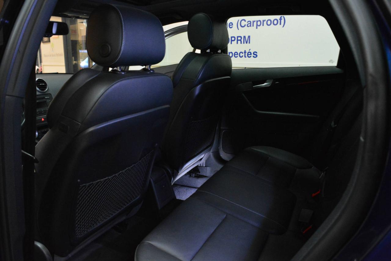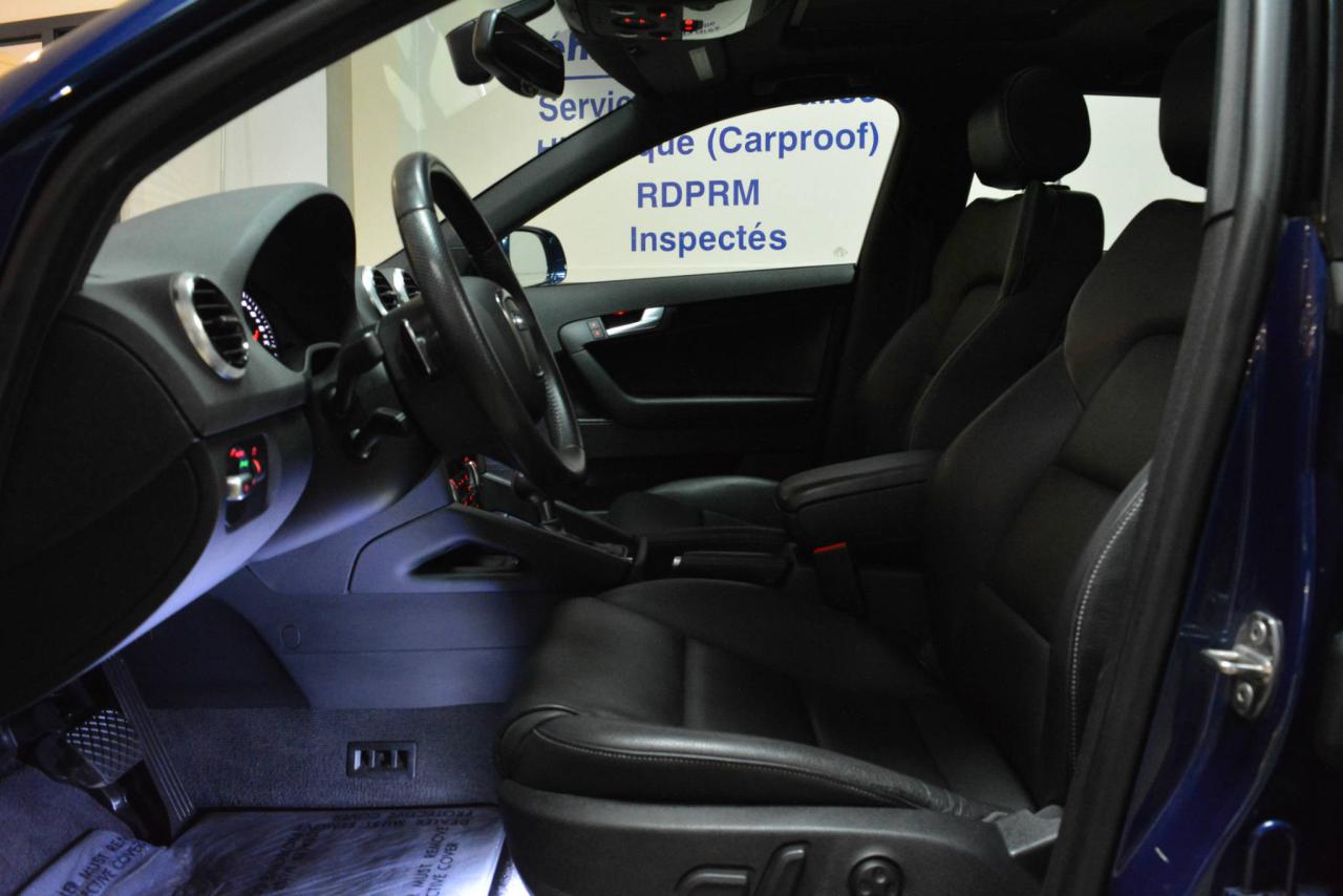 * Inspection complète et esthétique inclus * A3 hayon S-Line Progressiv Quattro * Transmission automatique 6 vitesses #Stronic# * Traction intégrale #Quattro# * Moteur I4 2.0L TFSI #Turbo# * Suspension sport * Roues en alliage 18'' * Cuir noir * #Toit ouvrant panoramique# * Phares bi-xénon automatiques * Rétroviseurs chauffants * Sièges chauffants * Siège électrique conducteur * Régulateur de vitesse * Radio Audi Concert * Lecteur CD * Prise auxiliaire * Financement disponible * Financement commercial disponible