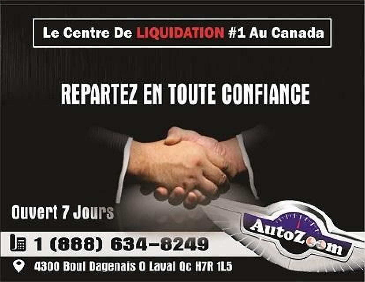 VÉHICULE CERTIFIÉ, RAPPORT D'INSPECTION, CARPROOF INCLUS, OUVERT 7 JOURS. AUTOZOOM POUR LE PRIX LA QUALITÉ ET LE SERVICE. -Contactez nous en tout temps par messagerie texte au (438) 504-9666. -# Stock : A4067 -Prix Régulier : 11,725$ I Promotion : 10,725$ -Financement prêt ouvert : 36$ par semaine. -Le paiement proposé est pour une durée de 72 mois, versement comptant initial de 2 000$ ou valeur d'échange équivalent nécessaire (0$ comptant disponible), frais de crédit total de 1 800$, taxes en sus (sujet à l'approbation de votre crédit, certaines conditions s'appliquent). - Financement simple et rapide au meilleur taux sur le marché. Aucun cas refusé 1ere, 2ieme, 3ieme chance, 0$ comptant disponible. Approbation rapide ---> http://www.autozoom.ca/fr-CA/demande-de-credit-usage.aspx - Obtenez le maximum pour votre échange - Garantie prolongé disponible - Ouvert 7 jours www.AutoZoom.ca 4300 Boul. Dagenais, Laval Qc H7R1L5 450-314-9666 Sans frais :1-888-634-8249