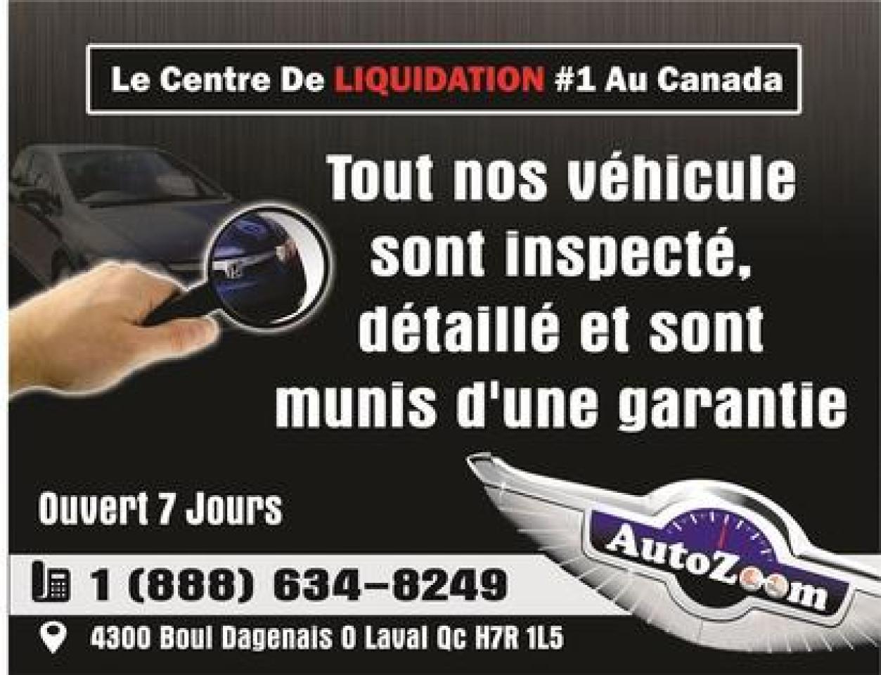 VÉHICULE CERTIFIÉ, RAPPORT D'INSPECTION, CARPROOF INCLUS, OUVERT 7 JOURS. AUTOZOOM POUR LE PRIX LA QUALITÉ ET LE SERVICE. -Contactez nous en tout temps par messagerie texte au (438) 504-9666. -# Stock : A4123 -Prix Régulier : 10,885$ I Promotion : 9,435$ -Financement prêt ouvert : 32,77$ par semaine. -Le paiement proposé est pour une durée de 72 mois, versement comptant initial de 2 000$ ou valeur d'échange équivalent nécessaire (0$ comptant disponible), frais de crédit total de 1 639,83$, taxes en sus (sujet à l'approbation de votre crédit, certaines conditions s'appliquent). - Financement simple et rapide au meilleur taux sur le marché. Aucun cas refusé 1ere, 2ieme, 3ieme chance, 0$ comptant disponible. Approbation rapide ---> http://www.autozoom.ca/fr-CA/demande-de-credit-usage.aspx - Obtenez le maximum pour votre échange - Garantie prolongé disponible - Ouvert 7 jours www.AutoZoom.ca 4300 Boul. Dagenais, Laval Qc H7R1L5 450-314-9666 Sans frais :1-888-634-8249