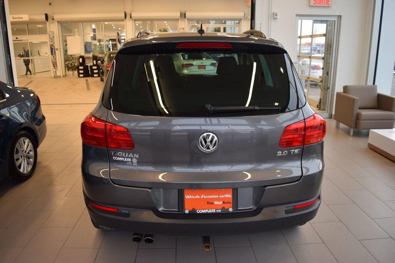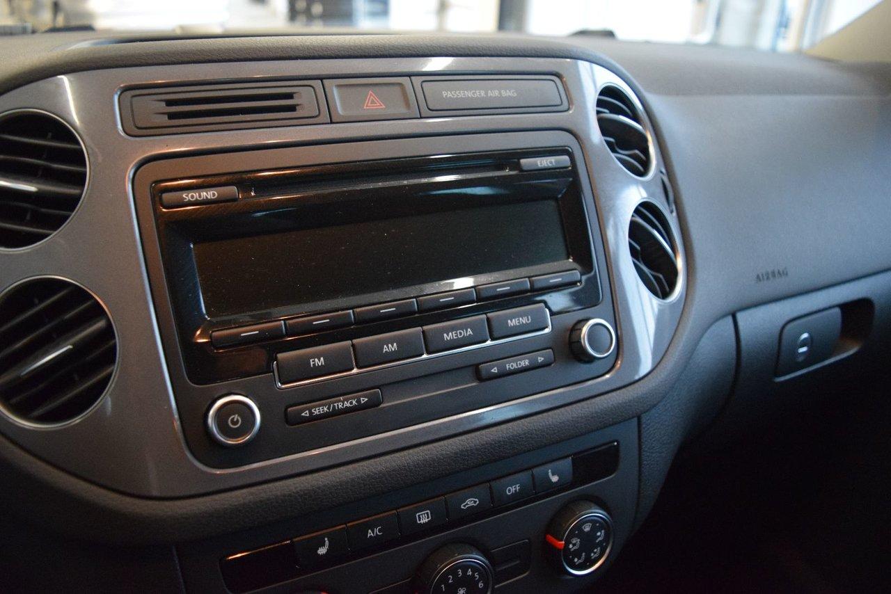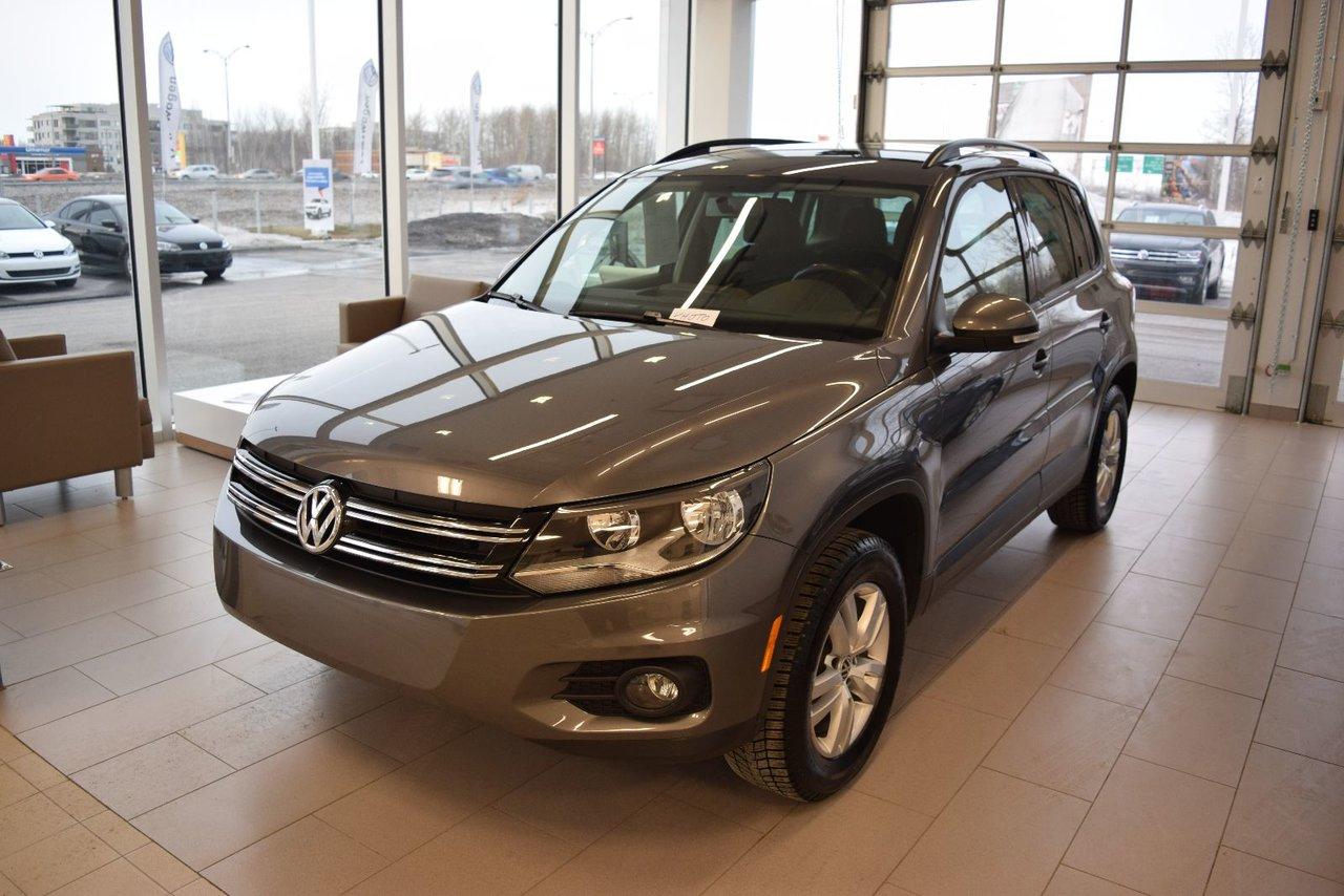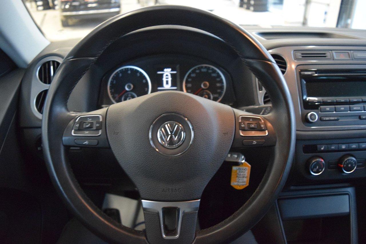 Volkswagen Tiguan Trendline Ens Commodit? 2014Régulateur de vitesse, Essuie-glaces intermittents, Essuie-glace arrière, Anti-démarreur, Freins ABS, Contrôle de stabilité, Coussin gonflable conducteur, Coussins gonflables latéraux, Lecteur CD, Chargeur de CD, Lecteur MP3, 6 Haut-parleurs, Portes électriques, Tachymètre, Vitres électriques, Air climatisé, Commandes audio au volant, Sièges chauffants, Volant ajustable, Tapis protecteurs, Vitres teintées, Ordinateur de bord, Rétroviseur électrique, Direction assistée, Télédéverrouillage, Rétroviseurs chauffants, Banquette arrière divisé, Système d\'alarme, Coussins gonflables arrière pour la tête, Sièges tissu, Siège conducteur - soutien lombaire, Siège passager - soutien lombaire, Freins à disque, Rétroviseurs électriques, Jantes en alliage, Antipatinage, Phares antibrouillards, Verrous de sécurité pour enfants, Système de surveillance de la pression des pneus, Sièges baquets, Prise Auxiliaire, Cache bagages, Aluminium, Climatisation