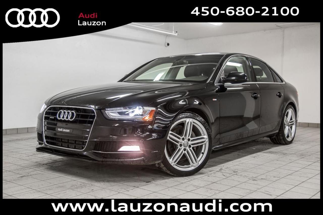 ROUE DE 19'', CUIR, XENON, BLUETOOTH, MANUAL, PARKTRONIC,NAVIGATION, CAMERA ***MAINTENANT OUVERT LE SAMEDI*** Avec plus de 100 voitures, VUS, 4x4 et camions inspectés et certifiés en inventaire, Audi Lauzon Certifié vous offre le plus grand choix de véhicule d'occasion Audi sur la Rive-Nord et dans les Laurentides. Nous sommes situés Laval, à seulement 10 minutes de Montréal. Tous nos véhicules d'occasions sont minutieusement inspectés et réparés avec soin par nos techniciens certifiés et un rapport CarProof vous est remis sur demande lors de l'achat. *** FINANCEMENT À PARTIR DE 0.9% ***. *** LE MEILLEUR PRIX POUR VOTRE ÉCHANGE *** Notre équipe professionnelle et certifiée saura vous offrir une expérience d'achat personnalisée pour l'achat de votre prochain véhicule d'occasion. Contactez-nous aussi afin de vous informer sur nos promotions en cours. 26-01-2019/80000km,PROLONGATION DE GARANTIE *AUDI CERTIFIÉ* DE 2 ANS ET POSSIBILITÉ DE 160000KM ET FINANCEMENT A PARTIR DE 0.9% DISPONIBLE