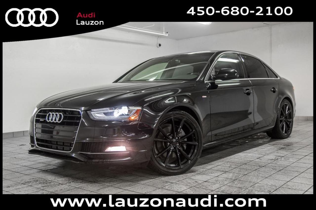 QUATTRO, ROUES DE19'', S-LINE, TOIT OUVRANT, CUIR, XENON, BLUETOOTH, SYSTEME DE NAVIGATION ***MAINTENANT OUVERT LE SAMEDI*** Avec plus de 100 voitures, VUS, 4x4 et camions inspectés et certifiés en inventaire, Audi Lauzon Certifié vous offre le plus grand choix de véhicule d'occasion Audi sur la Rive-Nord et dans les Laurentides. Nous sommes situés Laval, à seulement 10 minutes de Montréal. Tous nos véhicules d'occasions sont minutieusement inspectés et réparés avec soin par nos techniciens certifiés et un rapport CarProof vous est remis sur demande lors de l'achat. *** FINANCEMENT À PARTIR DE 0.9% ***. *** LE MEILLEUR PRIX POUR VOTRE ÉCHANGE *** Notre équipe professionnelle et certifiée saura vous offrir une expérience d'achat personnalisée pour l'achat de votre prochain véhicule d'occasion. Contactez-nous aussi afin de vous informer sur nos promotions en cours. 18-12-2018/80000km,PROLONGATION DE GARANTIE *AUDI CERTIFIÉ* DE 2 ANS ET POSSIBILITÉ DE 160000KM ET FINANCEMENT A PARTIR DE 0.9% DISPONIBLE