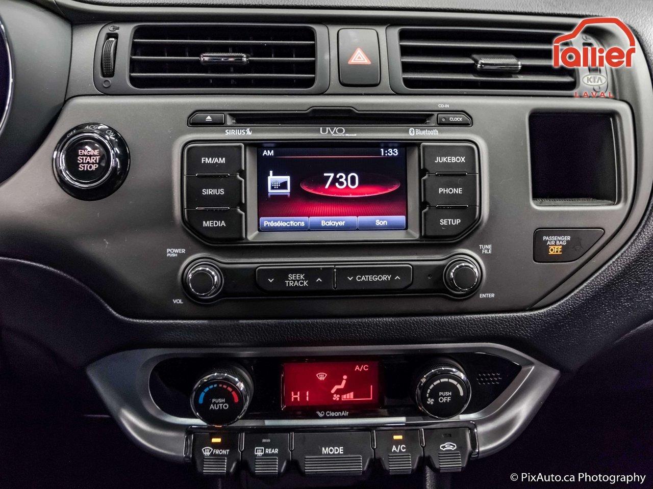 Kia Rio RIO5 SX CUIR TOUCHSCREEN* GARANTIE 10 ANS 200000KM GARANTIE 10 ANS 200000KM 2015Essuie-glaces intermittents, Anti-démarreur, Freins ABS, Contrôle de stabilité, Coussin gonflable conducteur, Coussins gonflables latéraux, Lecteur CD, Lecteur MP3, Volant ajustable, Tapis protecteurs, Phares automatiques, Rétroviseur électrique, Direction assistée, Rétroviseurs chauffants, Coussins gonflables arrière pour la tête, Freins à disque, Antipatinage, Verrous de sécurité pour enfants, Sièges baquets, Cache bagages