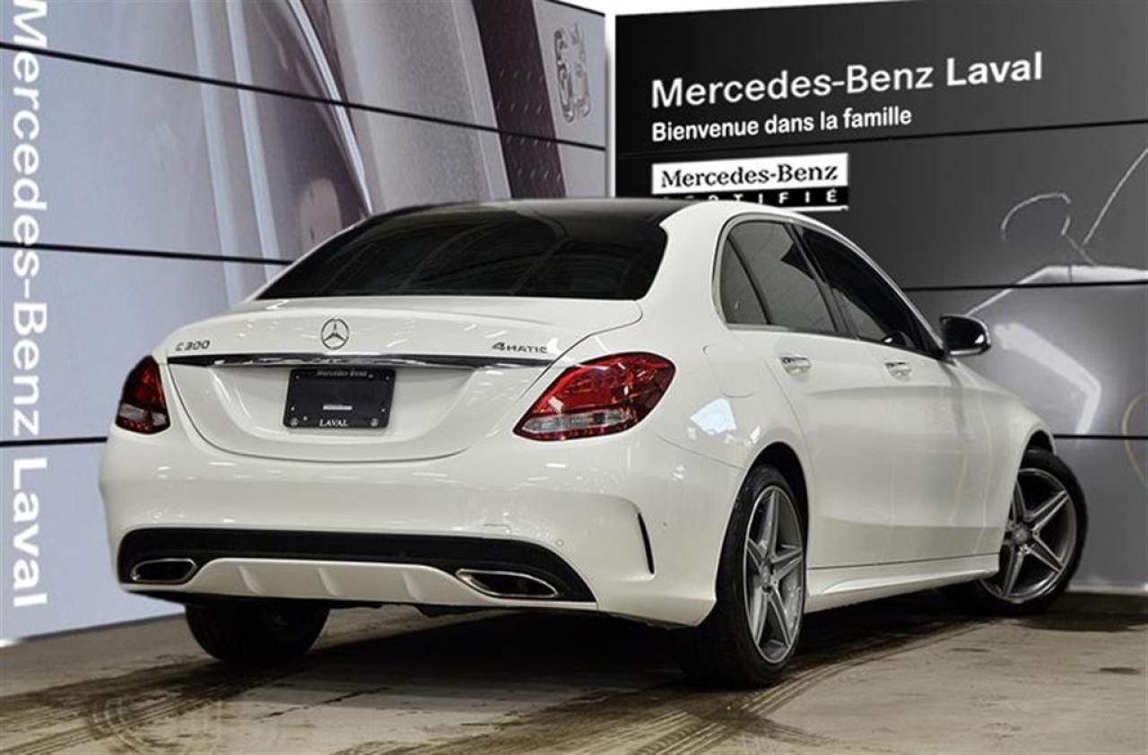 CERTIFIE! C300 4MATIC, NAVIGATION, CAMERA DE RECUL, TOIT PANORAMIQUE, SYSTEME PARKTRONIC, KEYLESS GO, ENSEMBLE DE STYLE AMG, JANTES AMG 18 POUCES, ENSEMBLE EXTERIEURE AMG, SUSPENSION SPORT.Cette 2015 C300 4MATIC vous offre toutes ces options en plus des équipements de mise de Mercedes-Benz! Cette voiture Certifiée vous est offerte à partir de 0.9% d'intérêt et une protection étoile de 2 ans/120,000km doit être vu en personne! Venez chez Mercedes-Benz de Laval dès aujourd'hui pour un essai routier!