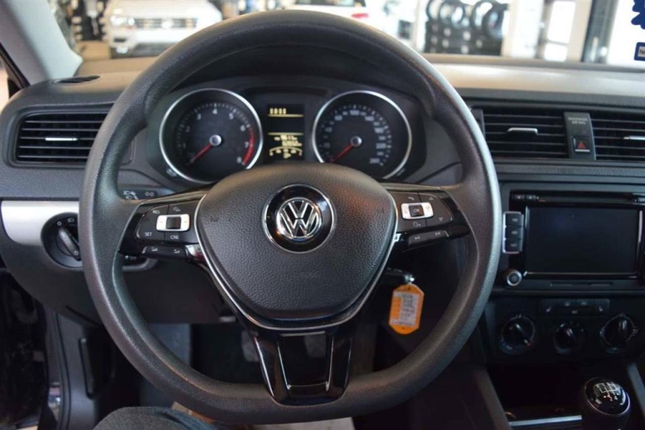 Volkswagen Jetta 2.0L Trendline+ Mags Toit 2015Régulateur de vitesse, Toit ouvrant, Essuie-glaces intermittents, Anti-démarreur, Freins ABS, Contrôle de stabilité, Coussin gonflable conducteur, Coussins gonflables latéraux, Lecteur CD, Chargeur de CD, Lecteur MP3, 6 Haut-parleurs, Portes électriques, Vitres électriques, Air climatisé, Commandes audio au volant, Sièges arrières rabattables, Sièges chauffants, Volant ajustable, Tapis protecteurs, Vitres teintées, Ordinateur de bord, Caméra de recul, Radio AM/FM, Direction assistée, Télédéverrouillage, Rétroviseurs chauffants, Banquette arrière divisé, Système d\'alarme, Coussins gonflables arrière pour la tête, Sièges tissu, Freins à disque, Rétroviseurs électriques, Jantes en alliage, Antipatinage, Verrous de sécurité pour enfants, Sièges baquets, Prise Auxiliaire, Technologie Bluetooth intégrée, Roue de secours - Temporaire