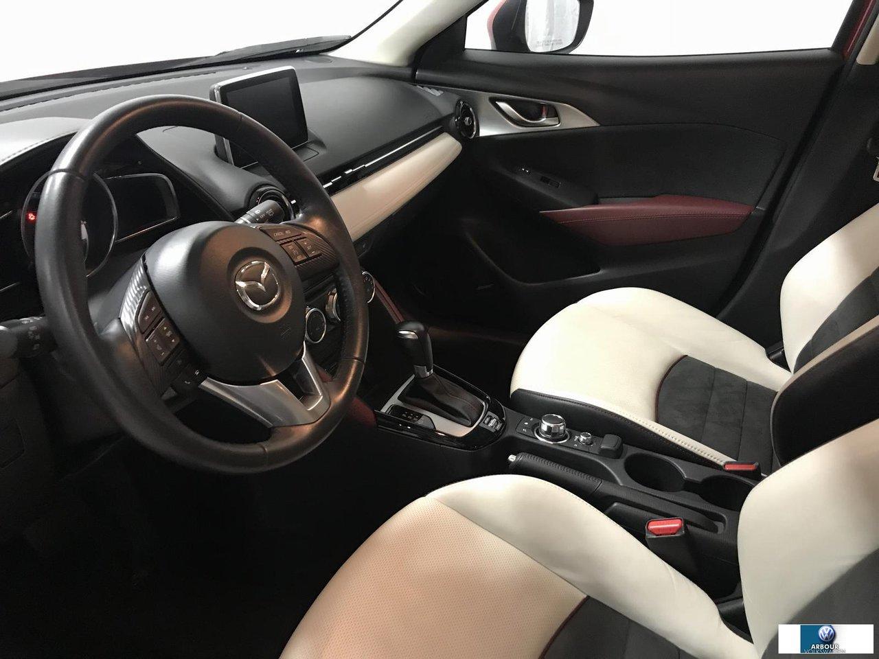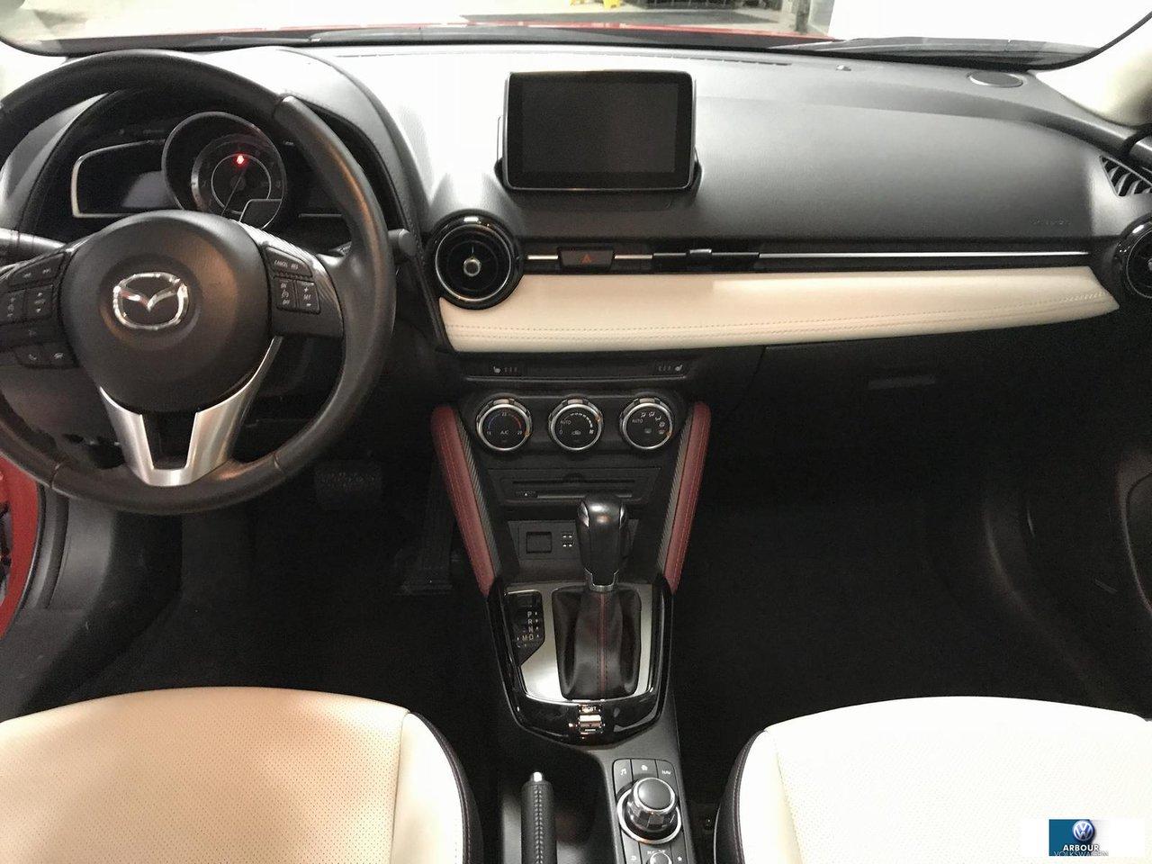 Mazda CX-3 CUIT + TOIT + MAG + GPS GT 4 X 4 + NAVIGATION 2016Régulateur de vitesse, Toit ouvrant, Essuie-glaces intermittents, Anti-démarreur, Freins ABS, Contrôle de stabilité, Coussin gonflable conducteur, Lecteur CD, Lecteur MP3, Miroirs chauffants, Portes électriques, Tachymètre, Vitres électriques, Air climatisé, Intérieur en cuir, Commandes audio au volant, Sièges chauffants, Volant ajustable, Aileron, Tapis protecteurs, Ordinateur de bord, Caméra de recul, Horloge, Radio AM/FM, Direction assistée, Télédéverrouillage, Essuie-glace détecteur de pluie, Rétroviseurs électriques, Jantes en alliage, Antipatinage, Phares antibrouillards, Coussins gonflables, Verrous de sécurité pour enfants, Système de surveillance de la pression des pneus, Dégivreur de lunette arrière, Miroirs ajustables de l\'intérieur, Sièges baquets, Technologie Bluetooth intégrée, Climatiseur automatique