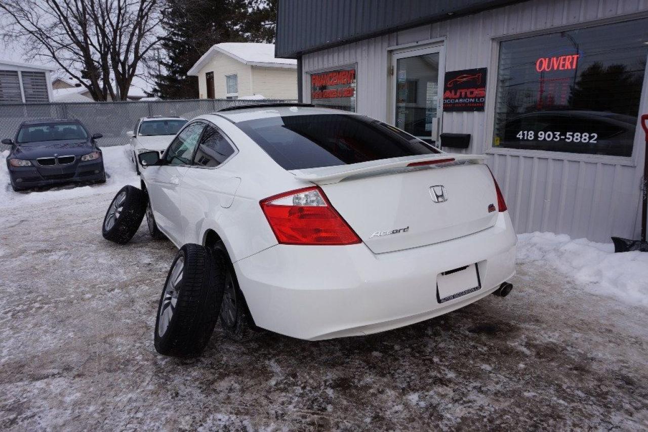 HONDA ACCORD 2009 COUPE Édition EX-L 4cyl 2.4 Litres i-VTEC ** FULL ÉQUIPÉ CUIR TOIT OUVRANT 8 ROUES INCLUS -- TRANSMISSION AUTOMATIQUE 5 RAPPORTS --- AVEC SEULEMENT 104 000 KM CERTIFIÉ / JAMAIS ACCIDENTÉ : ENTRETENU DIRECTEMENT CHEZ HONDA / 4 CYLINDRES 2.4 Litres i-VTEC TRÈS ÉCONOMIQUE, DURABLE ET FIABILITÉ HONDA RECONNUE (JAMAIS ACCIDENTÉ : RAPPORT CARPROOF DISPONIBLE) COULEUR EXTÉRIEUR BLANC, INTÉRIEUR EN CUIR NOIR / SIÈGES CHAUFFANTS-ÉLECTRIQUES INSPECTION COMPLÈTE INCLUSE -- ÉCHANGE ACCEPTÉ --- FINANCEMENT SUR PLACE À PARTIR 4.99 % -- GARANTIE INCLUS : 1 MOIS OU 1700 KM GROUPE MOTOPROPULSEUR -- POSSIBILITÉ DE GARANTIE PROLONGÉE À PRIX IMBATTABLE Avec Caa et Groupe Ppp. ÉQUIPEMENT COMPLET EX-L : AIR CLIMATISÉ - RÉGULATEUR DE VITESSES - TOIT OUVRANT ÉLECTRIQUE - AILERON - JANTES 16 POUCES / PNEUS D'ÉTÉ BON - ROUES D'ACIER / PNEUS DHIVERS EXCELLENT - ORDINATEUR DE BORD - LECTEUR CD-Mp3 - CONTRÔLE AUDIO AU VOLANT - CHARGEUR 6 CD - TRACTION CONTRÔLE - VITRES TEINTÉES - VOLANT AJUSTABLE === POUR PLUS DE RENSEIGNEMENTS DEMANDEZ (DAVID.LAMONTAGNE) 418-903-5882 // 418-931-4036 Cell === FINANCEMENT FACILE SUR PLACE 4.99 % NOUS SOMMES OUVERTS 6 JOURS : 2430 BOUL GUILLAUME-COUTURE, LÉVIS G6W-2R5 : AU PLAISIR DE VOUS SERVIR WWW.AUTOSOCCASIONS.CA
